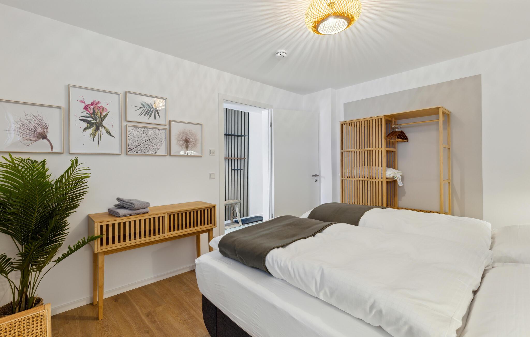 Årets ferie venter jer i denne komfortable lejlighed med tagterrasse og infrarød sauna.