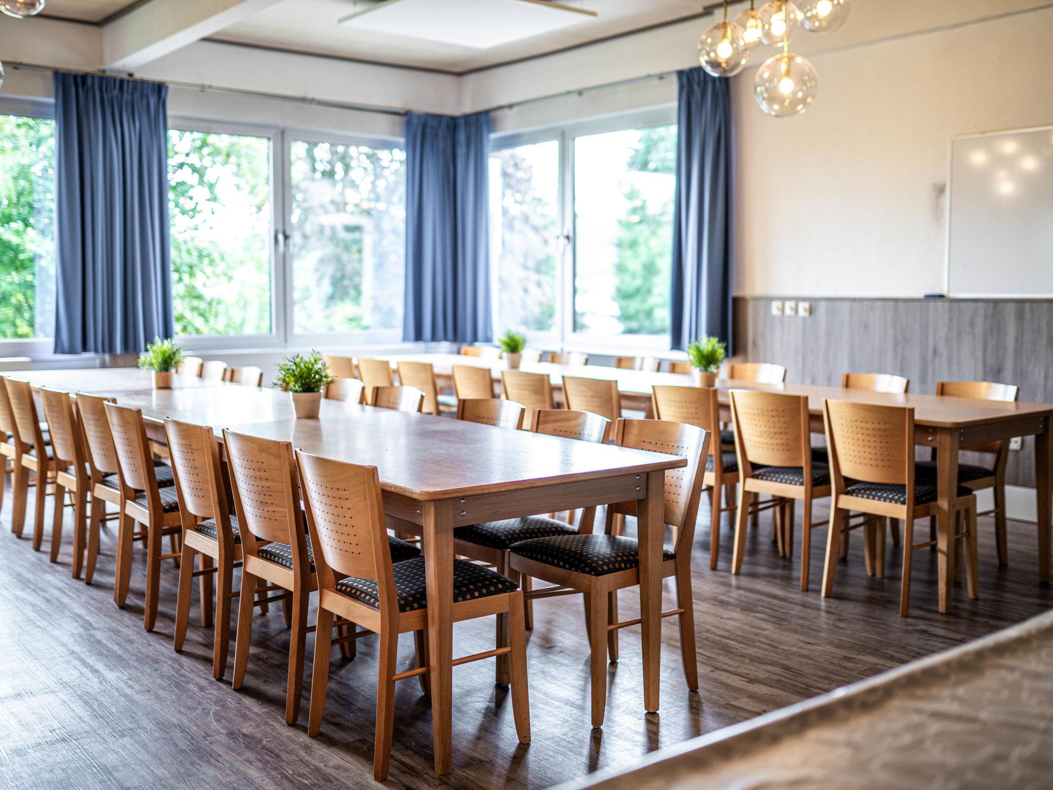 "Gruppe Rothaarsteig / 2 Wohneinheiten", 12-room apartment 330 m2 on 3rd floor. Spacious and bright, comfortable and modern furnishings: living/dining room. 10 rooms, each room with 1 double bed and shower/WC. 1 room with 1 bed. Kitchen (oven, dishwasher, 4 ceramic glass hob hotplates, toaster, kettle, microwave, freezer, grill, electric coffee machine). Shower/WC, hydro massage bath. Heating. Facilities: baby cot. Internet (WiFi, free). Please note: smoke alarm, fire extinguisher. No internal connecting door between the separated properties. Access via the staircase. One unit has the living room, the other has the kitchen.