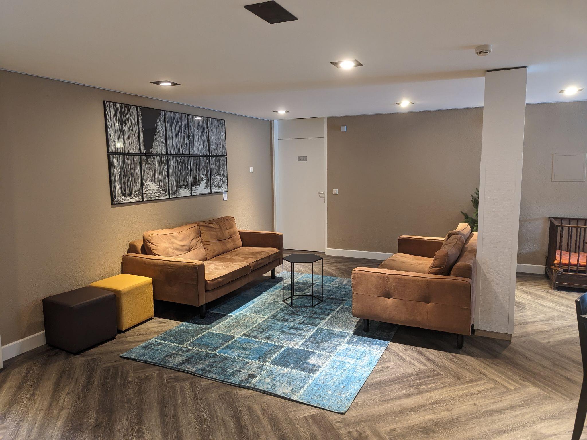 "Gruppe Grönebach", 21-room apartment 650 m2. Spacious, comfortable and modern furnishings: living/dining room. Living/dining room. 18 rooms, each room with 1 double bed and shower/WC. 1 room with 1 bed. Large kitchen (oven, 12 ceramic glass hob hotplates, toaster, kettle, electric coffee machine). Bath/WC, hydro massage bath. Oil heating. Facilities: baby cot. Internet (WiFi, free). Please note: smoke alarm, fire extinguisher. No internal connecting door between the separated properties. The apartment covers the entire 3rd floor and consists of the two separate apartments DE5788.110.1 and DE5788.110.2.