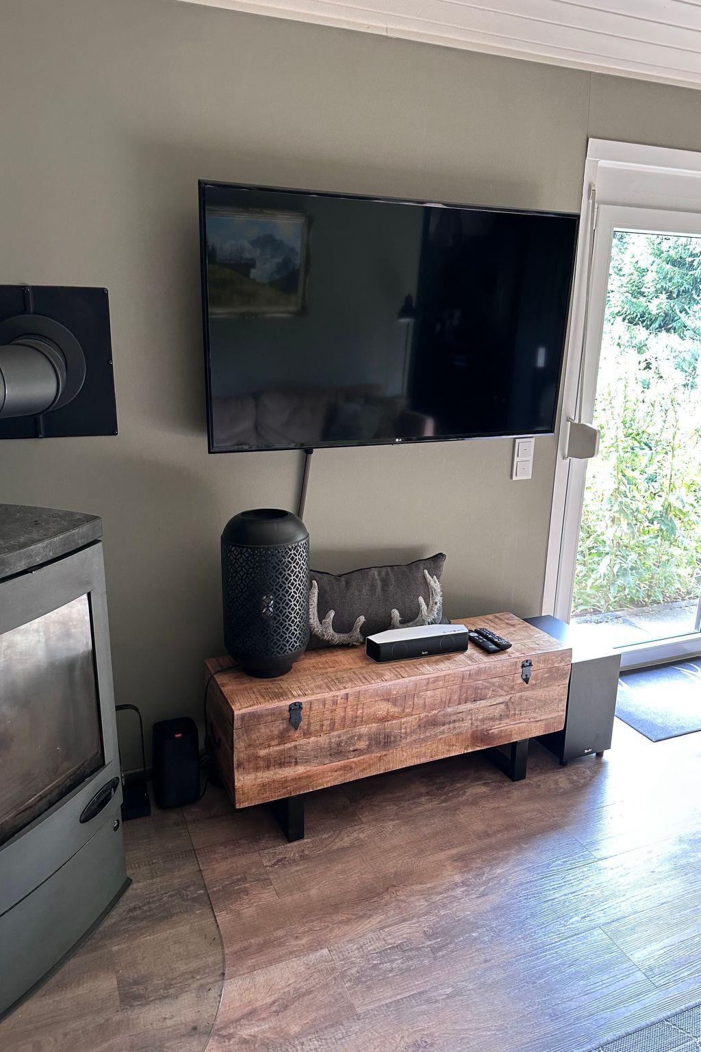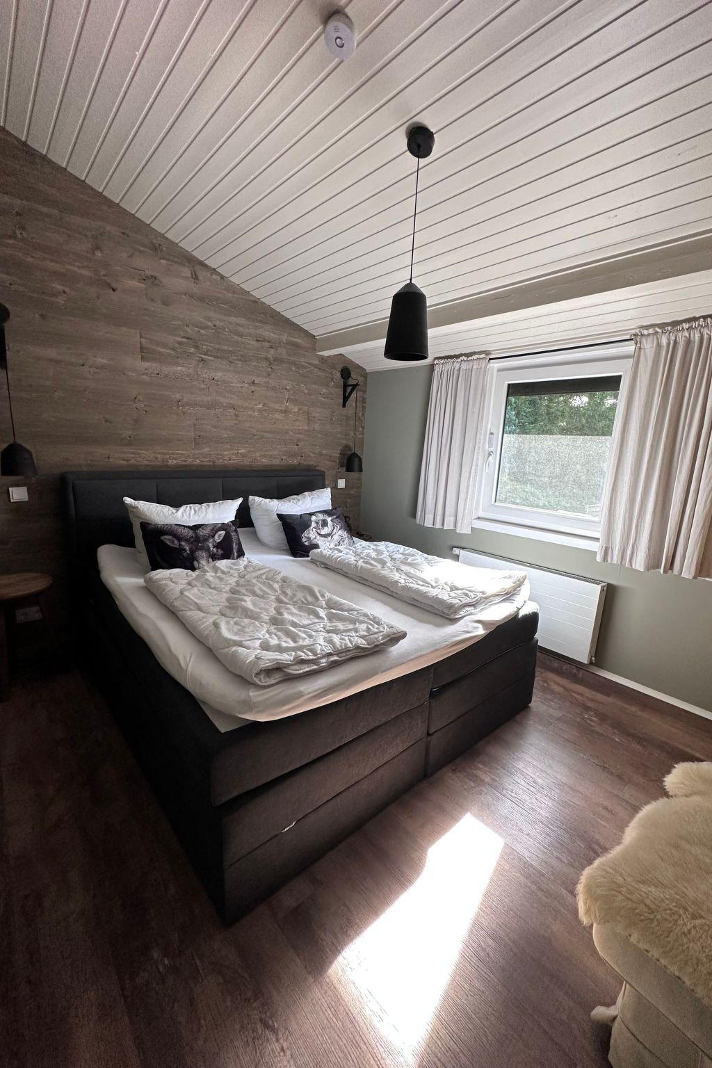 Inside the house, you will find exclusive furnishings that leave nothing to be desired. The parlour and kitchen are equipped with a fireplace, a luxurious suede sofa, a large TV including Netflix, a Teufel surround system and a large tree-edge dining table. A high chair is available for younger guests, while the high-quality Nobilia fitted kitchen with dishwasher and a fully automatic DeLonghi coffee machine fulfils all self-catering needs. The three bedrooms offer maximum sleeping comfort with box-spring beds and a bunk bed especially for children, plus a TV in the master bedroom and a cot. The bathroom is transformed into a private wellness oasis with its floor-to-ceiling shower and other amenities.