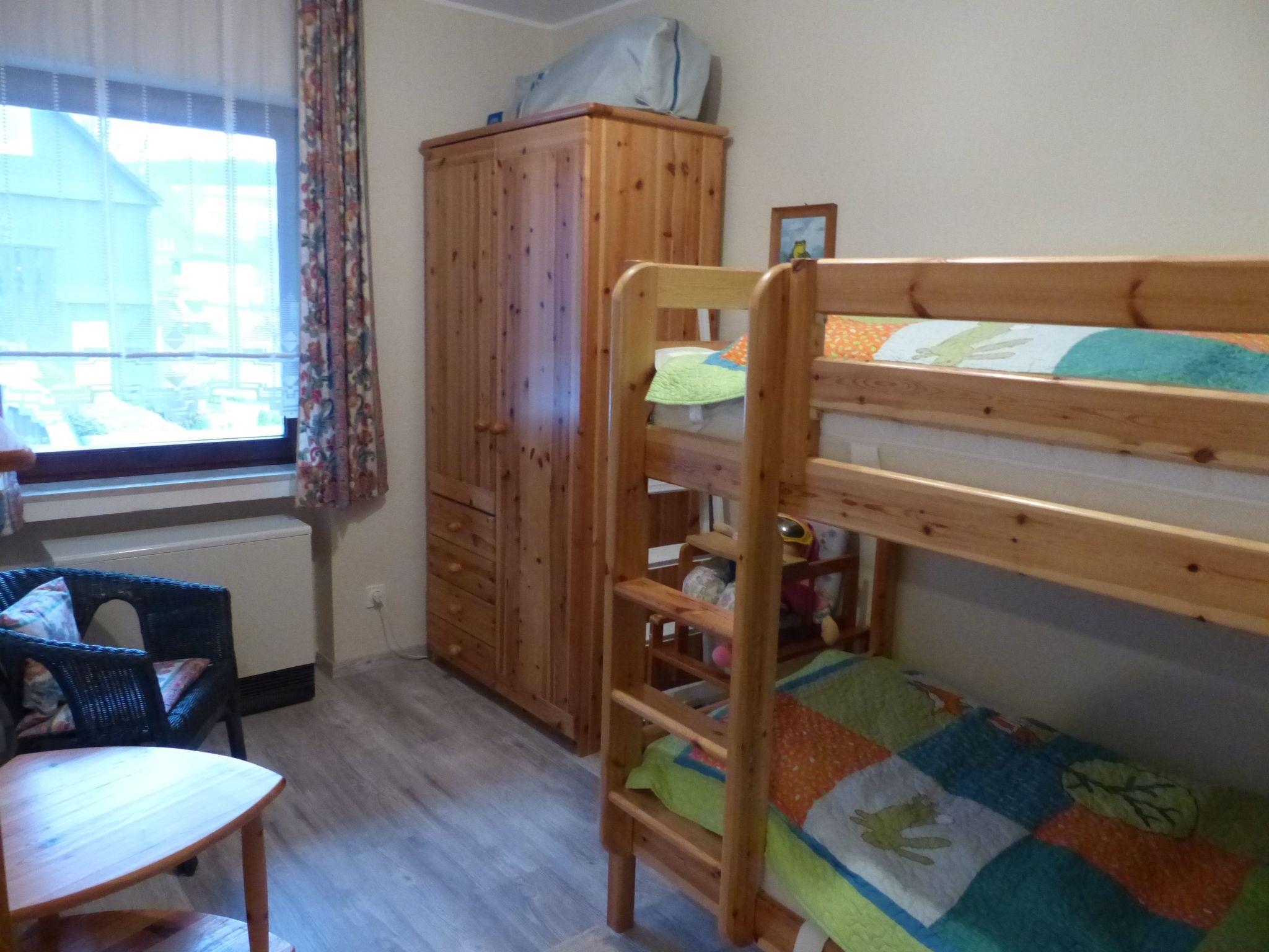 It is located in the quiet village of Hildfeld-Winterberg. A camping cot and a highchair are available.
