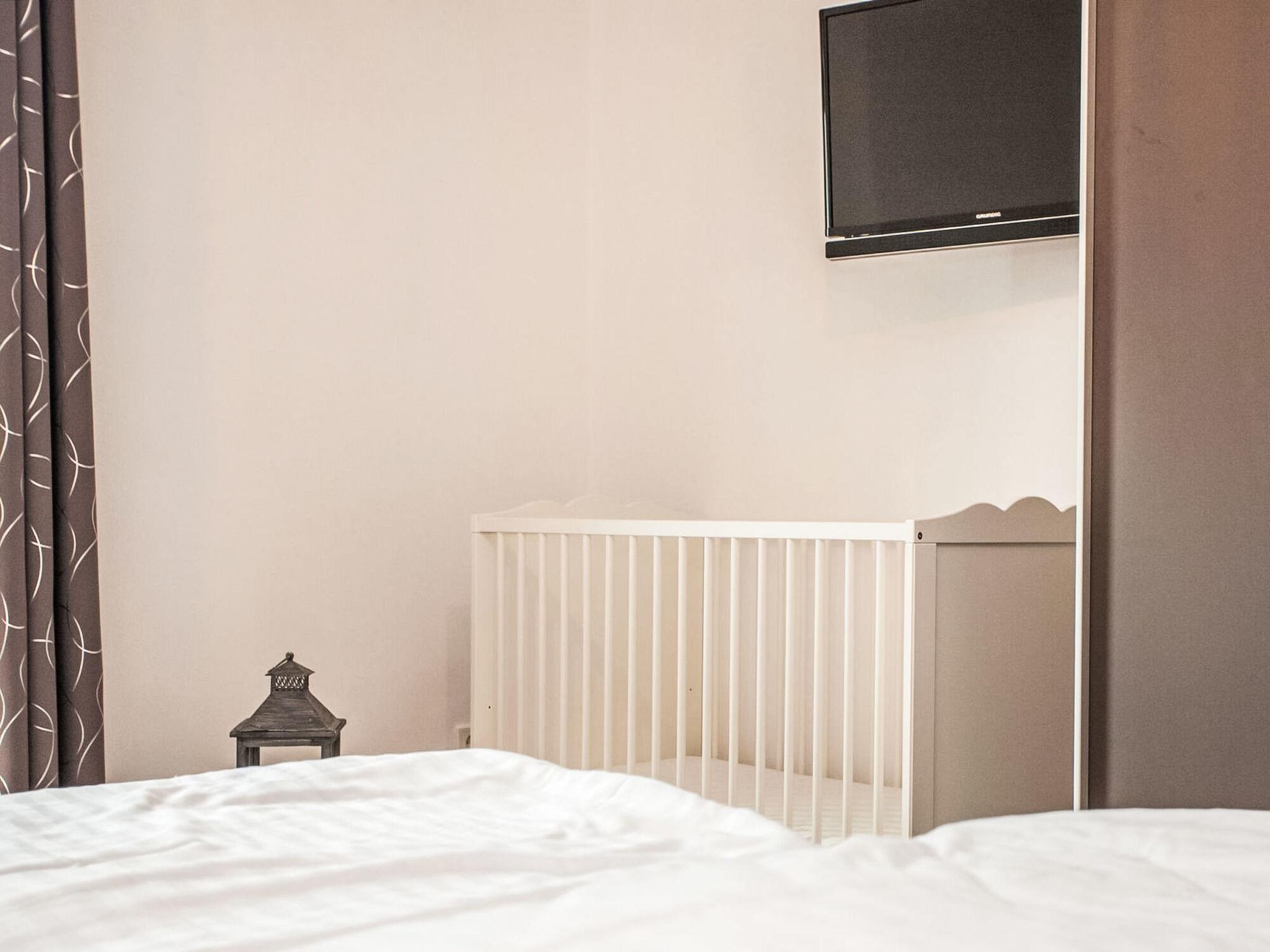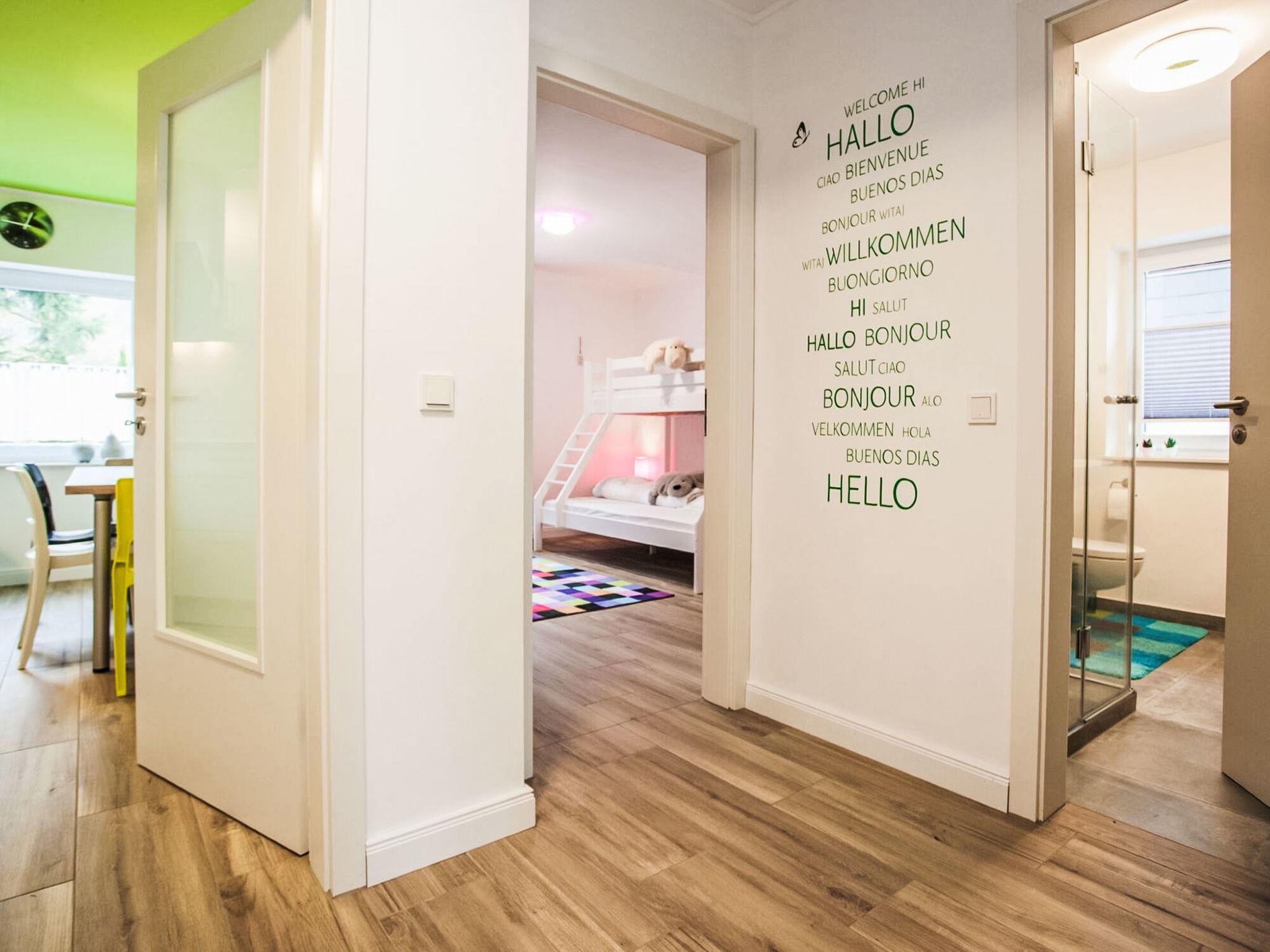 "Family Lodge", 3-room apartment 76 m2. Bright, tasteful and cosy furnishings: living/dining room with satellite TV and international TV channels. Exit to the balcony. 1 room with 1 double bed (160 cm, length 200 cm), satellite TV (flat screen). 1 room with 1 double bed (160 cm, length 200 cm). Kitchen (oven, dishwasher, 4 ceramic glass hob hotplates, toaster, freezer, electric coffee machine). Shower/WC. Heating. Balcony. Balcony furniture. Facilities: children's high chair, baby cot. Internet (WiFi, free). Please note: non-smokers only. Smoke alarm, fire extinguisher.