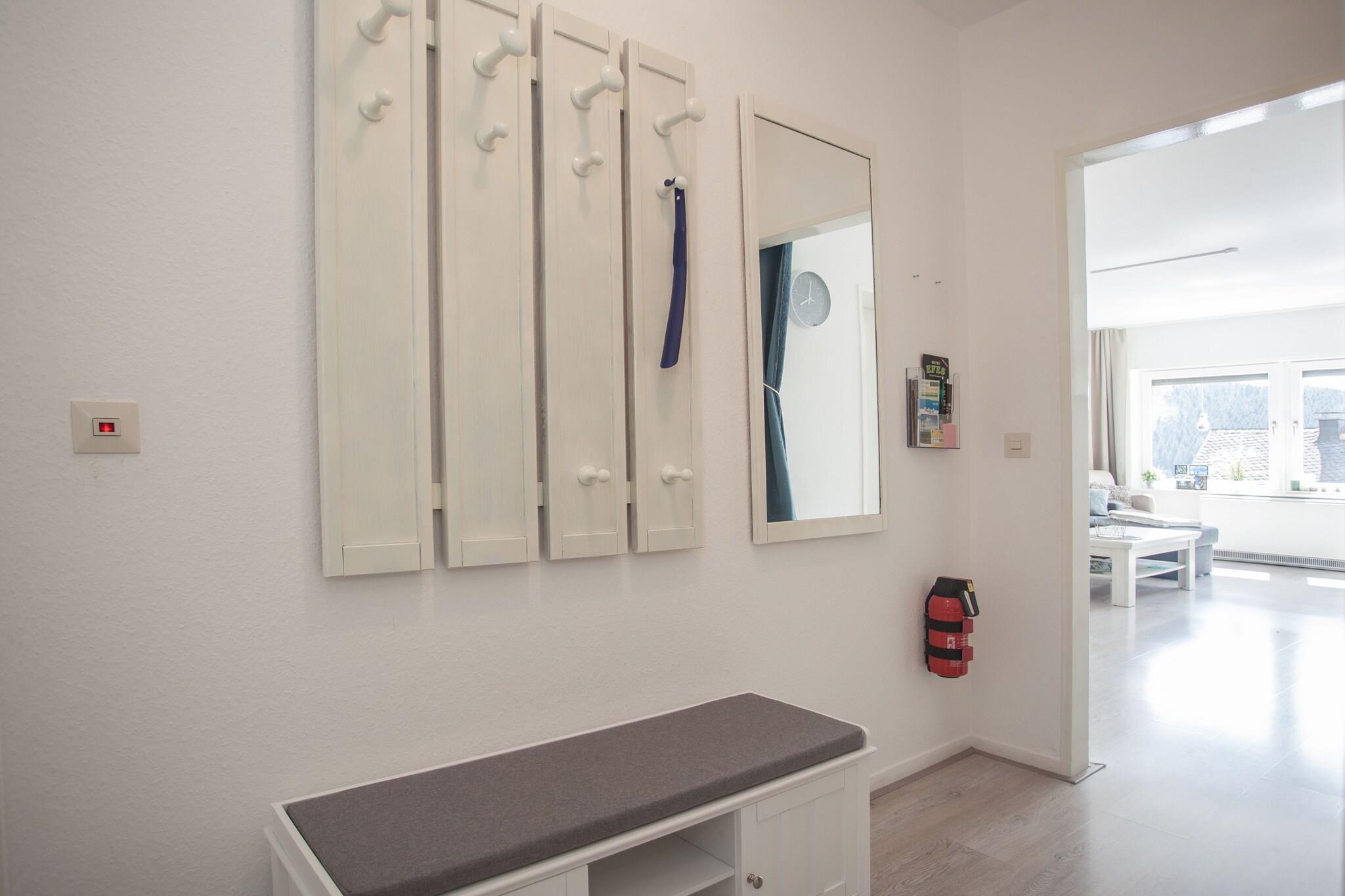 The holiday accommodation is suitable for 5 adults. The living room has a double sofa bed, a flat-screen TV and a seating area. From the living room you can go out onto the furnished terrace, where you can enjoy the sun all day. The kitchen is equipped with a oven, refrigerator with small freezer, toaster, dishwasher and coffee maker. The bedroom has a double bed with a wardrobe and bedroom with bunkbed. The bathroom has a toilet, sink and shower. You can park your car safely in the garage or in front of it, and you can also safely store your skis and bikes in the garage. A laundry room with washing machine is available. The house is in a small complex. The house is on the edge of the forest and offers an excellent starting point for hiking and skiing areas. Surrounded by magnificent nature, you can take the challenge of mountain bike trails. You can walk to the Hillebachsee and enjoy water skiing, wakeboarding, surfing, pedal boating, swimming, playing ping-pong or volleyball and much more. In the winter it is a paradise for snow lovers. Either you can ski and sledding in Niedersfeld or in the fabulous, snow-sure Winterberg. By car,it is only 10 Minutes to the excellent slopes. The magical Hochheide lures hikers. The bobsleigh run in Winterberg is 9 km from Niedersfeld. The Kahler Asten is located 12 km from the apartment. The Winterberg ski lift is 8 km away. Niedersfeld is very popular for travelers who are intersted in mountain hiking, landscapes and hiking. Shops: The center of Winterberg can be reached in 10 minutes by car. In front of the house there is a bus stop, which you can easily use to drive to Niedersfeld local center. Other shops are 5 minutes walk away.