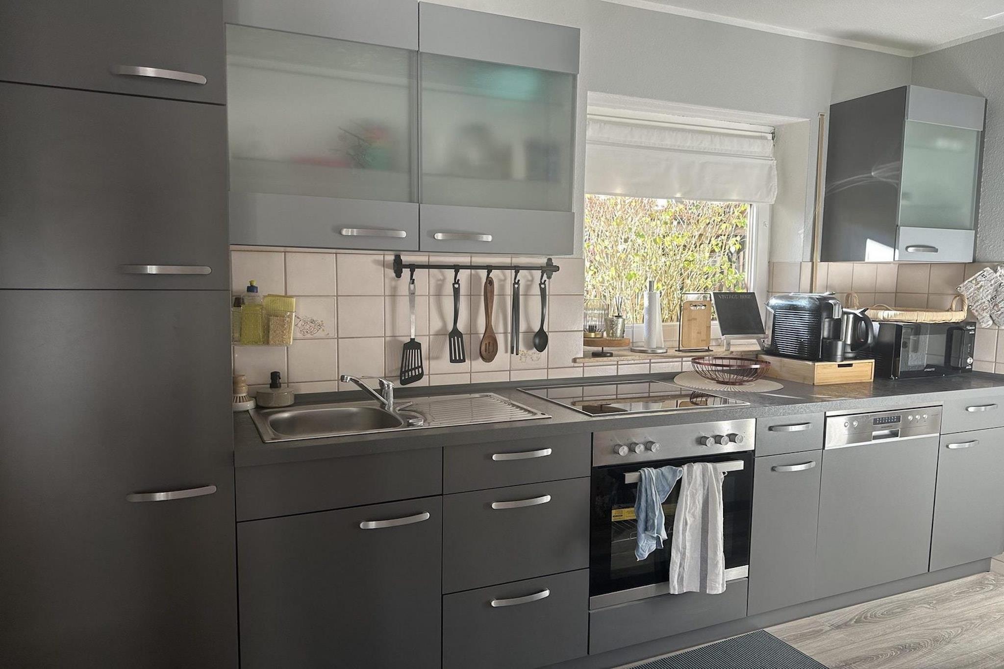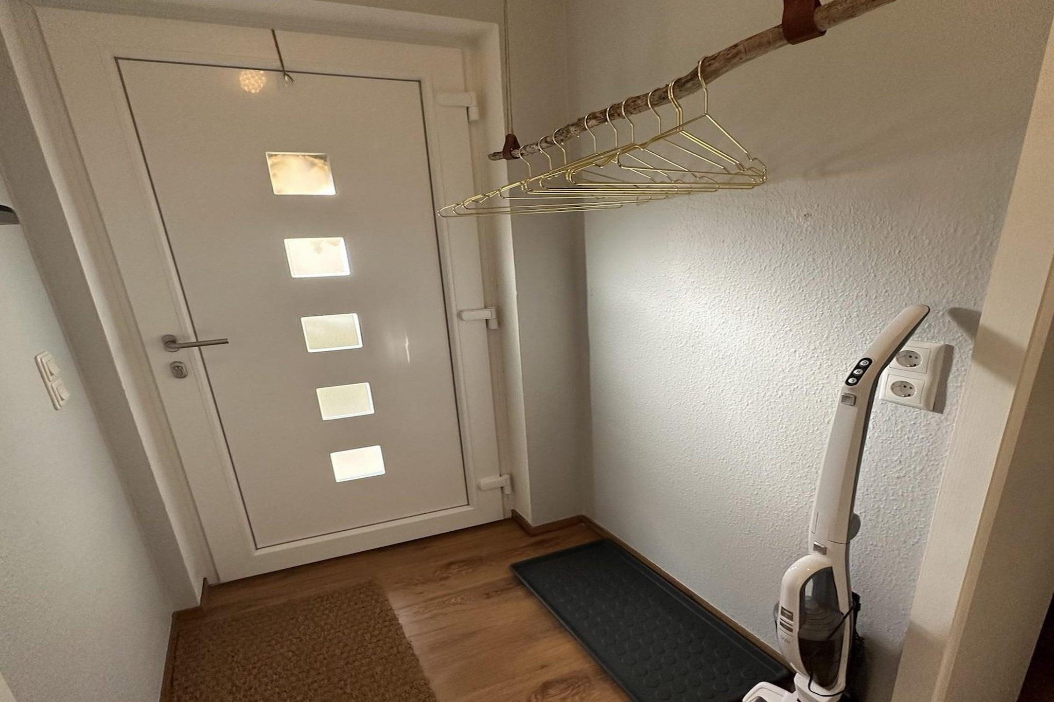 The comfortably furnished apartment of approx. 45 m2 is located in a small complex built on a mountain. It is quietly located on the edge of the forest in Niedersfeld. The accommodation is located in the basement and is accessible via a staircase. From the apartment you can go straight into the garden and enjoy the view of the beautiful mountain landscape. The spacious, open living room with kitchen is furnished with a sofa bed and a seating area. On cold winter evenings you can enjoy the cozy electric fireplace. A pleasant play corner has been set up for children. The kitchen is equipped with a large refrigerator with a freezer compartment, a ceramic hob, a combi oven and a dishwasher. The bedroom has a double bed with plenty of storage space. The spacious bathroom has a shower, sink and toilet. Imagine sitting on the spacious terrace with a glass of wine during the long summer evenings! And in winter in the snow with a glass of mulled wine! There is a covered storage room for skis, bicycles, prams and trolleys. A dog is welcome by arrangement! Niedersfeld is the ideal starting point for hiking, cycling and winter sports and is close to Winterberg. There is a cozy village center with a bakery, greengrocer and florist. The village has many beautiful half-timbered houses surrounded by green meadows and colorful forests. In twenty minutes you can walk to the Hillebachsee, a mountain lake with a beach where you can practice numerous activities such as swimming, volleyball, fishing and water skiing. Ideal for a day of relaxation or sport in summer. Also nearby is the Hochheide, the largest mountain heath in north-west Germany, which turns a beautiful purple color in late summer. In winter it is a Walhalla for everyone who loves snow: cross-country skiing, tobogganing, skiing on the Ettelsberg in Niedersfeld or the snow-sure Winterberg. 10 minutes