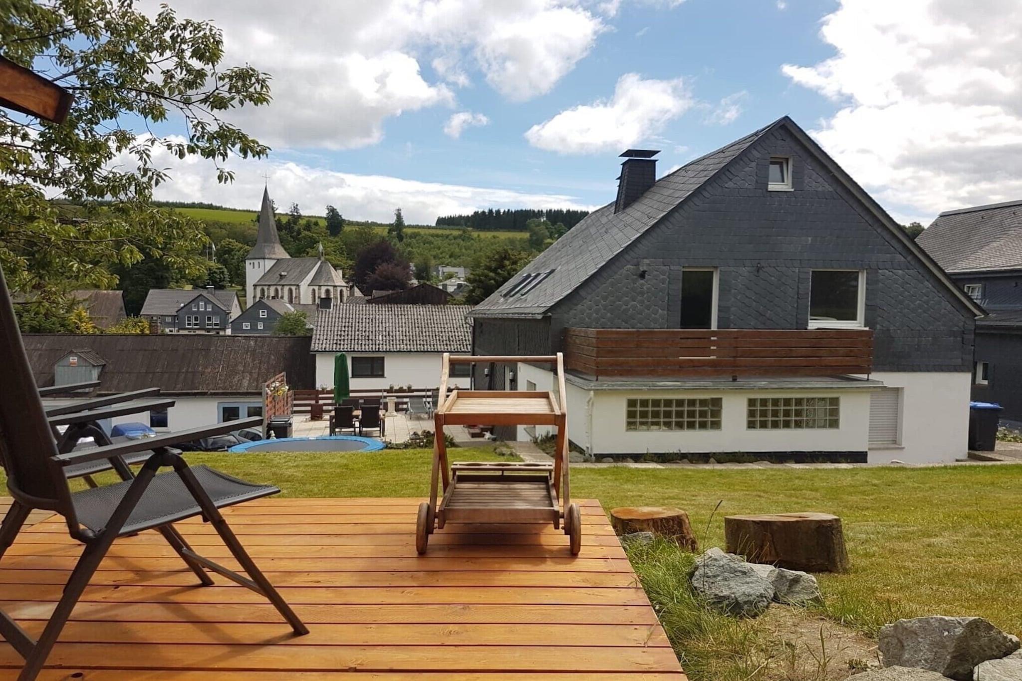 The luxurious kitchen is equipped with a large dining table where you can eat with the whole family, play games and enjoy an after-dinner drink. The cozy living room with a seating area is in open connection with the kitchen. On this floor there is a bathroom and a spacious bedroom with a double box spring bed. The two spacious bedrooms with wonderful box spring beds are on the upper floor, where there is also another bathroom. Each bedroom has its own wardrobe. And what could be nicer than to find your beds made when you arrive. The beautiful large garden with garden furniture is also at your disposal. Enjoy your breakfast or a glass of wine in the evening here. In the garage there is a table tennis table with billiards and balls and a dart board with darts. There is a large trampoline in the garden. In the basement there is space for skis, this is a heated ski room. It's the right place for a great vacation, whether relaxing or active. The region around Grönebach/Winterberg is ideal for being active and enjoying nature. The Sauerland offers an ideal environment for mountain biking, hiking and active leisure activities both in summer and in winter. The region is one of the most popular holiday destinations in Germany and impresses with its tradition and hospitality. The local recreation area offers varied and adventurous hiking trails (e.g. Niedersfeld, Rothaarsteig and Uplandsteig). The cities of Winterberg, Brilon, Medebach, Willingen and Schmallenberg are within easy reach. The Sauerland offers a variety of worthwhile and interesting destinations: summer toboggan run, Fort Fun amusement park, mining museum, go-kart track, ice rink and much more. In winter, the well-known ski areas of Willingen and Winterberg offer attractive leisure activities.