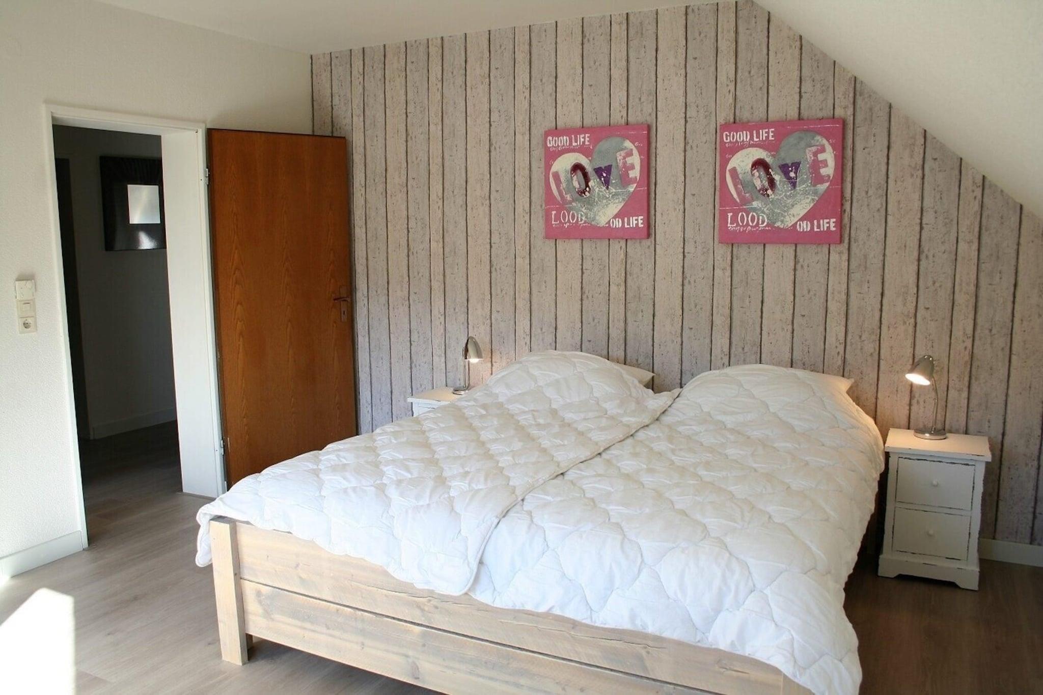 På 2. etage: (Køkken(elkedel, brødrister, komfur(glaskeramisk), kaffemaskine(kopper, kaffetragt, kaffepude), ovn, mikrobølgeovn, opvaskemaskine , køleskab, fryser), stue / spisestue(Fjernsyn, spisebord, sofahjørne), soveværelse(dobbeltseng, køjeseng), soveværelse(dobbeltseng), badeværelse(bruser, håndvask, toilet, føntørrer), Repos) tørretumbler, tremmeseng, vaskemaskine, balkon, have(deles med andre gæster), havemøbler, grill, 2x parkering, barnestol