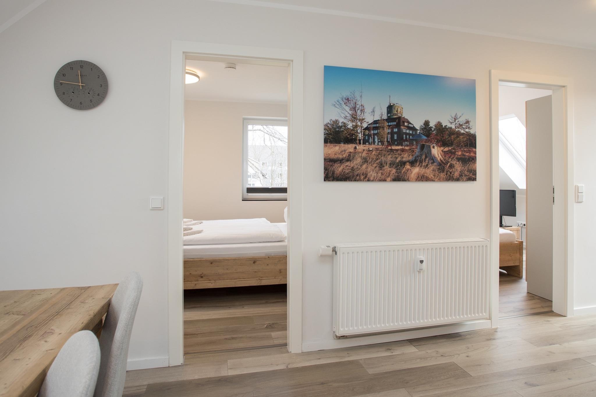 Let yourself be surprised by the stunning view of the Sauerland mountains from this renovated 3-room apartment on the top floor in Neuastenberg. With nature literally at your feet and opposite the Postwiese, you are just a stone's throw away from the Rothaarsteig hiking trail, the bike park or the Kahler Asten and a short distance from the center of Winterberg. This apartment in the Neuastenberg district is therefore the perfect base to explore the surroundings. Whether you want to hike, bike or just enjoy the beautiful surroundings, everything is within reach. And after a day full of experiences, you can enjoy the peace and comfort in this fine apartment. In the spacious dining and living area you will find a two-seater sofa that can be converted into a sofa bed, so you have 2 sleeping places in no time. You can watch a movie on the flat screen television. The cozy dining area offers space for six people, so you can dine here with your entire travel group. The fully equipped kitchen leaves nothing to be desired. Here you will find a refrigerator, a 4-burner ceramic hob, an oven, refrigerator and a dishwasher. But also a Nespresso machine for coffee lovers, a kettle for a delicious cup of tea and a toaster for a tasty toasted sandwich. The two bedrooms are both equipped with a double bed (160x200cm), two bedside tables, bed lighting and a flat screen television. Here you can relax after a day out and about. The modern bathroom is equipped with a spacious rain shower, a sink with storage space, a toilet and a handy hairdryer. A parking space is available at the property so you can always park your car. Unfortunately, your four-legged friend is not allowed to join you on holiday in this accommodation. If you are traveling with a child up to 2 years old, you must bring the necessary items for him/her yourself. Neuastenberg, located in the picturesque Sauerland, offers an idyllic escape for winter sports enthusiasts. With its location between 605 and 730 meters above sea level, this ski area reveals approximately 8 kilometers of varied slopes, including a challenging black slope for experienced skiers. The combination of natural and artificial snow ensures optimal skiing conditions from mid-December to mid-March. A special experience is skiing in the evening hours; 4.5 kilometers of illuminated slopes and a fun park come to life. The charm of Neuastenberg also extends to the facilities in the area. Visitors can relax in cozy bars such as Pferdestall and Sunside café, or enjoy an authentic German pilsner in the Schirmbar and other local cafes. For those looking for adventure off the slopes, Kartbahn Kartfun offers exciting indoor racing experiences. Wellness centers with inviting saunas, massages and bubble baths are ready for relaxing moments during your holiday. In addition, the toboggan runs offer an adrenaline rush with fast descents, while the surrounding mountains offer perfect routes for hikers and mountain bikers.