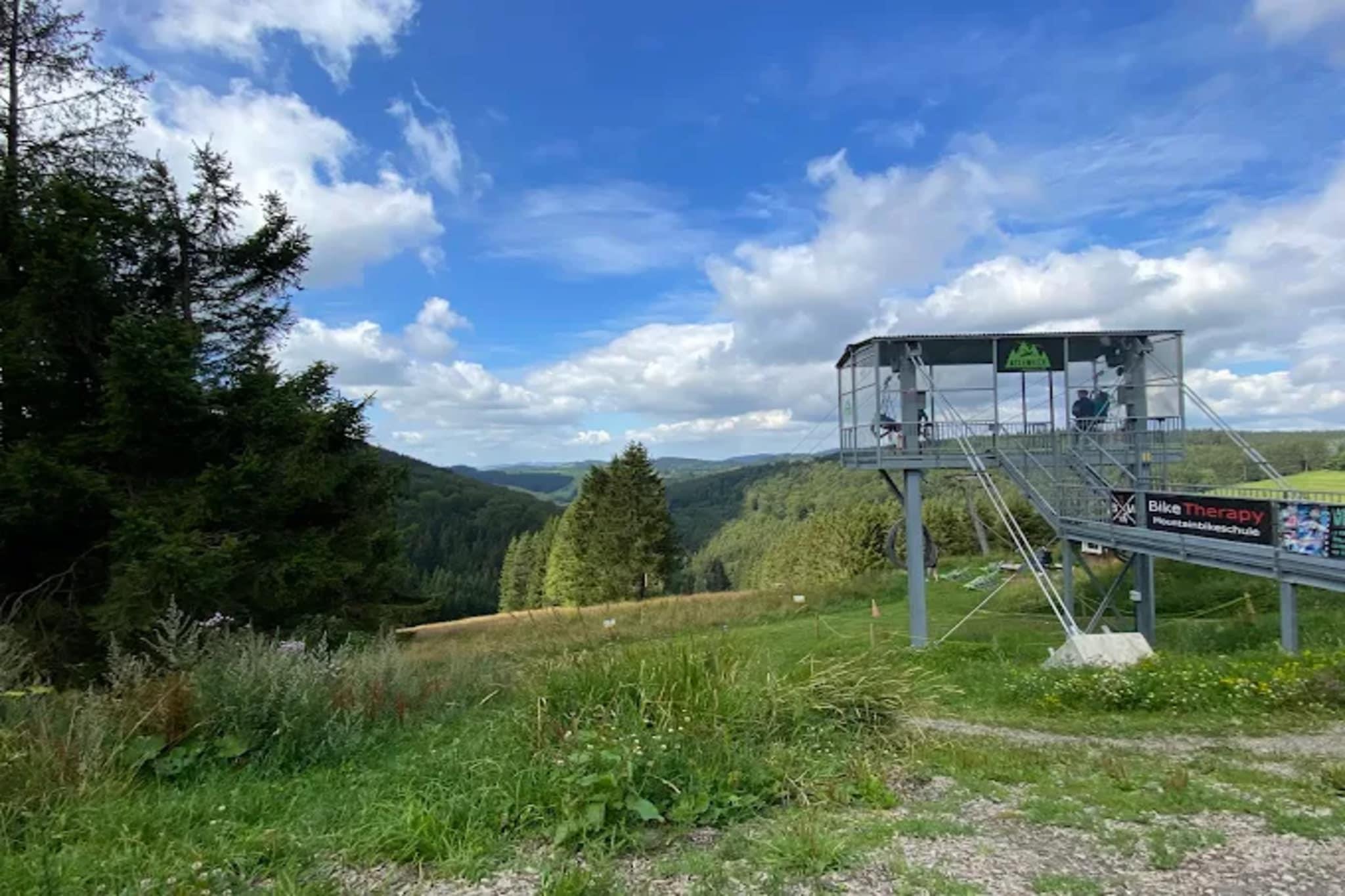 Enjoy the breathtaking view over the Kahler Asten from your own balcony. This accommodation is quietly located in Winterberg yet close to the lively ski slopes and excellent public transport connections. Perfect for both those seeking tranquility and adventurers! Via a short flight of five steps outside, you enter the ground-floor apartment, which is otherwise entirely on one level. The living room invites you to relax, with a comfortable sofa with a chaise lounge, a separate armchair, and a coffee table near the television. There is ample cabinet space around the television for storing personal items. Adjacent to the living room is the dining area, which seats six people. Here you can enjoy meals together, prepared in the adjacent kitchen. This kitchen is fully equipped; with a stove, refrigerator with freezer compartment, and oven, you can quickly whip up a meal. After eating, the dishwasher takes over the work. A cup of coffee or tea is also quickly made thanks to the coffee maker and kettle. The bedroom is equipped with a double bed (180x200 cm) with nightstands and bed lighting, and above it is a "single bunk bed" (90x200 cm). There is also a wardrobe and some shelves for storing clothes. An extra sleeping area can be created with the fold-out bed in the living room, which offers two more sleeping places (90x200 cm). The bathroom features a pleasant shower cabin, a sink with a mirror, and a toilet. Here you can freshen up before or after a lovely vacation day. The 8m² balcony offers a beautiful view over the mountains of Kahlen. It is furnished with two chairs where you can enjoy the surroundings. The accommodation also has some practical extras. There is a washer/dryer in the basement for communal use. There is also a garage at the property where you can safely store the car, ski equipment or rented bicycles. For children up to 2 years old, a high chair and a crib (70x140 cm) are available. Note: pets are not allowed in this accommodation. Welcome to Winterberg, the charming town in the heart of the Sauerland mountains, known for its winter sports opportunities and beautiful nature. Whether you come for the snow or the summer sun, Winterberg has something for everyone. Winterberg is the destination for winter sports enthusiasts. With various slopes suitable for both beginners and advanced skiers, the area offers plenty of opportunities for skiing, snowboarding, and cross-country skiing. The ski areas are equipped with modern facilities and offer stunning views over the snowy landscape. And if you want to try something different than skiing, try the toboggan runs or go ice skating at the local rink. In the warmer months, Winterberg transforms into a green paradise. Put on your hiking boots or rent a bike to explore the extensive network of trails. The routes lead you through dense forests, along sparkling lakes, and over quiet valleys. For adventurers, there are climbing parks and exciting mountain bike routes on mountains like the Kahler Asten.