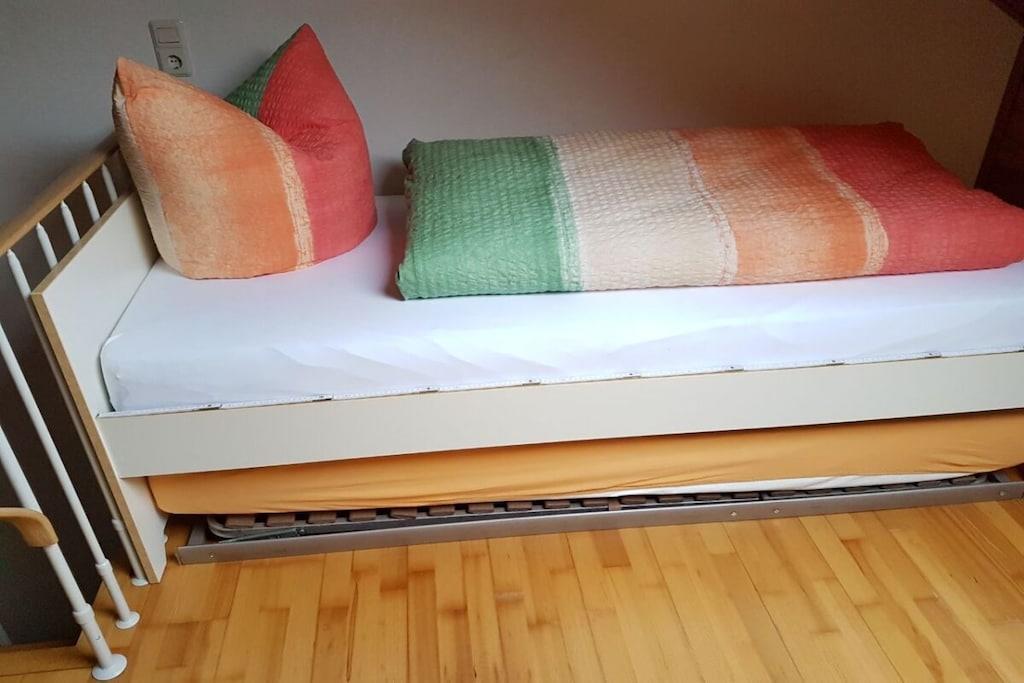 Fra gangen er der adgang til alle værelser: stuen med elektrisk pejs, satellit-tv, hi-fi-system, WiFi, lænestol og det fuldt udstyrede køkken med udtræksovn; badeværelset med et stort skab; og vindeltrappen til loftet. Afslut dagen på loggiaen, badet i eftermiddags- og aftensol. I soveværelset, med sin forfriskende morgensol, inviterer en dobbeltseng på 180x200 cm med en 30 cm tyk madras dig til en god nats søvn. Der er masser af opbevaringsplads til din bagage overalt. Et aflåseligt kælderrum fuldender udbuddet, hvor du kan opbevare dine ski om vinteren.