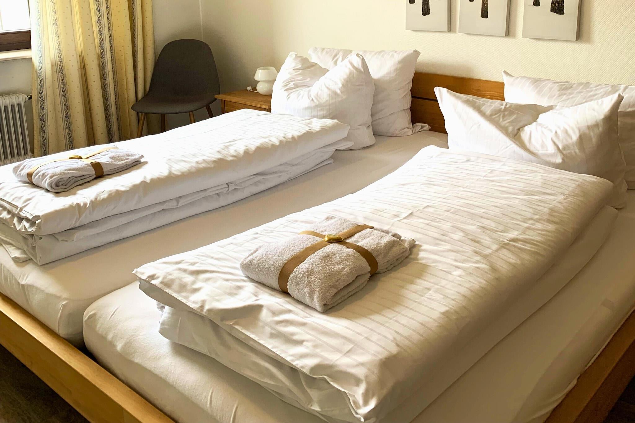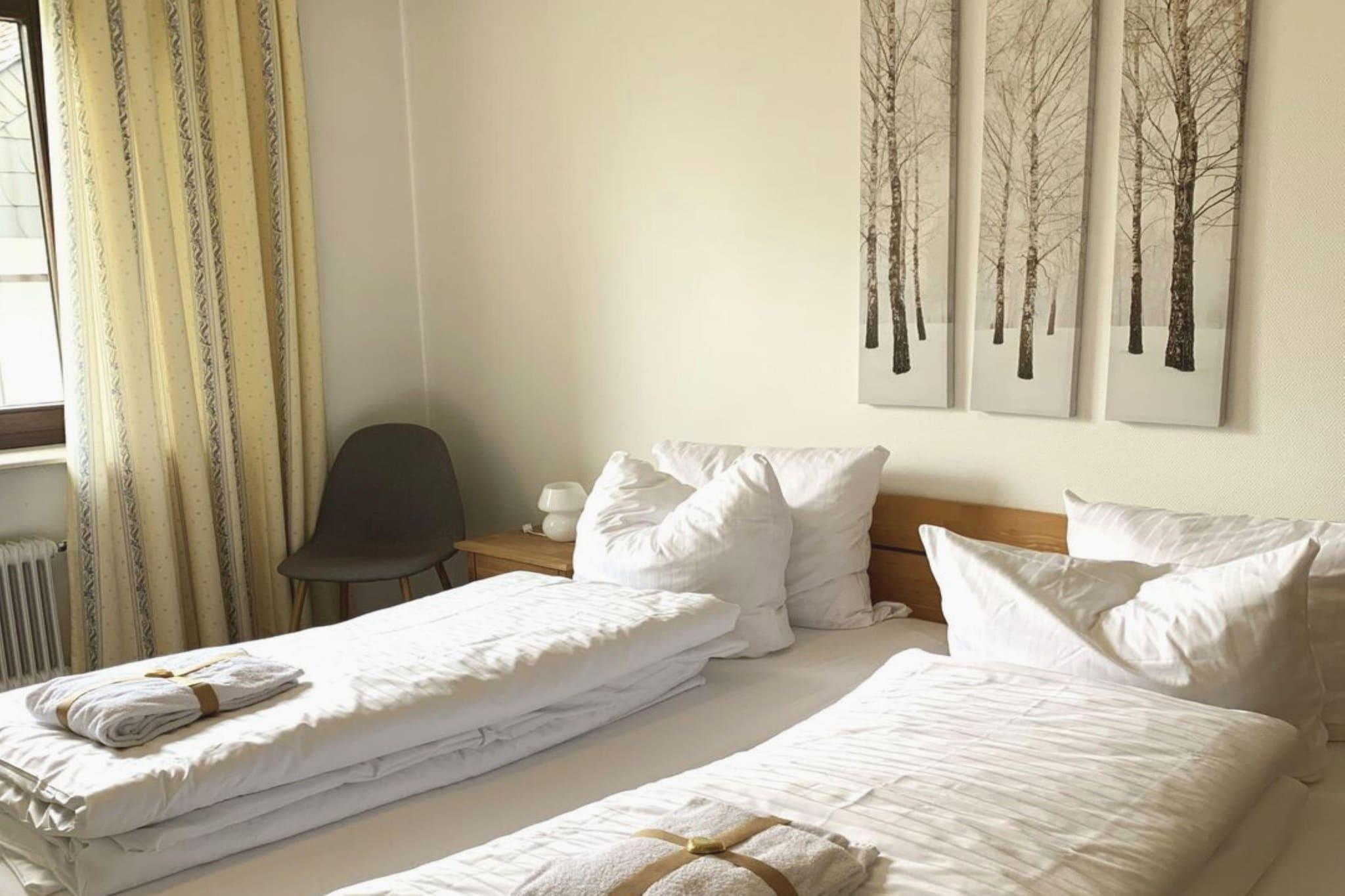 Denne veludstyrede lejlighed i Winterberg ligger kun en kort gåtur fra skiliftens karrusel og den berømte St. Georg-skihopbakke og er perfekt til gæster, der søger både udendørs eventyr og hyggelig afslapning. Med 54 m² komfortabelt opholdsrum tilbyder den en indbydende stue med en sovesofa, en separat spiseplads og en charmerende balkon, hvor du kan slappe af efter en dag på pisterne eller vandrestierne. Lejligheden har et moderne køkken udstyret til alle dine kulinariske behov, et fredeligt soveværelse med en dobbeltseng og et komplet badeværelse med badekar/bruser-kombination, håndvask og toilet. Hele planløsningen er omhyggeligt designet til at tilbyde en blanding af komfort og funktion for op til fire gæster. Uanset om du varmer op efter en vinterdag eller slapper af mellem sommervandreture, er pladsen skabt til hvile og genopladning. Gæsterne har adgang til fremragende fælles faciliteter, herunder en swimmingpool på stedet, en sauna (mod betaling) og et bordtennisrum til lidt venskabelig konkurrence. En parkeringsplads i den underjordiske garage og en offentlig skikælder tilføjer ekstra bekvemmelighed til dit ophold. Denne lejlighed, der ligger på 2. sal (kun trapper), placerer dig tæt på det bedste af Winterberg – perfekt til både skiløbere, vandrere og opdagelsesrejsende.