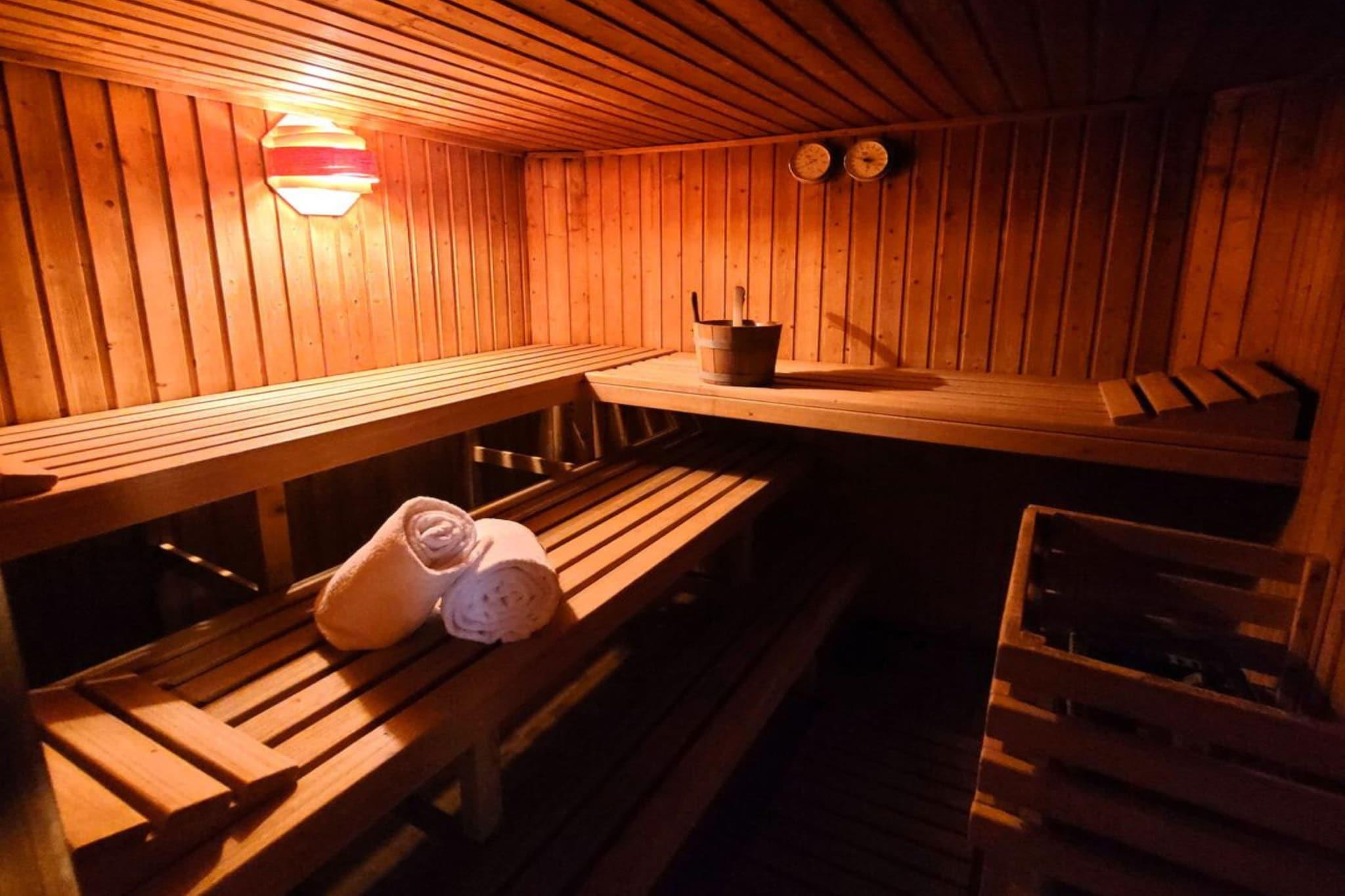 Stue(dobbeltsovesofa, Fjernsyn, spisebord, sofahjørne), Køkken(elkedel, brødrister, komfur, kaffemaskine, ovn, mikrobølgeovn, opvaskemaskine , køleskab), soveværelse(dobbeltseng), badeværelse(badekar, bruser, håndvask, toilet, føntørrer), sauna(betalt), vaskemaskine, balkon, parkering, private indoor pool