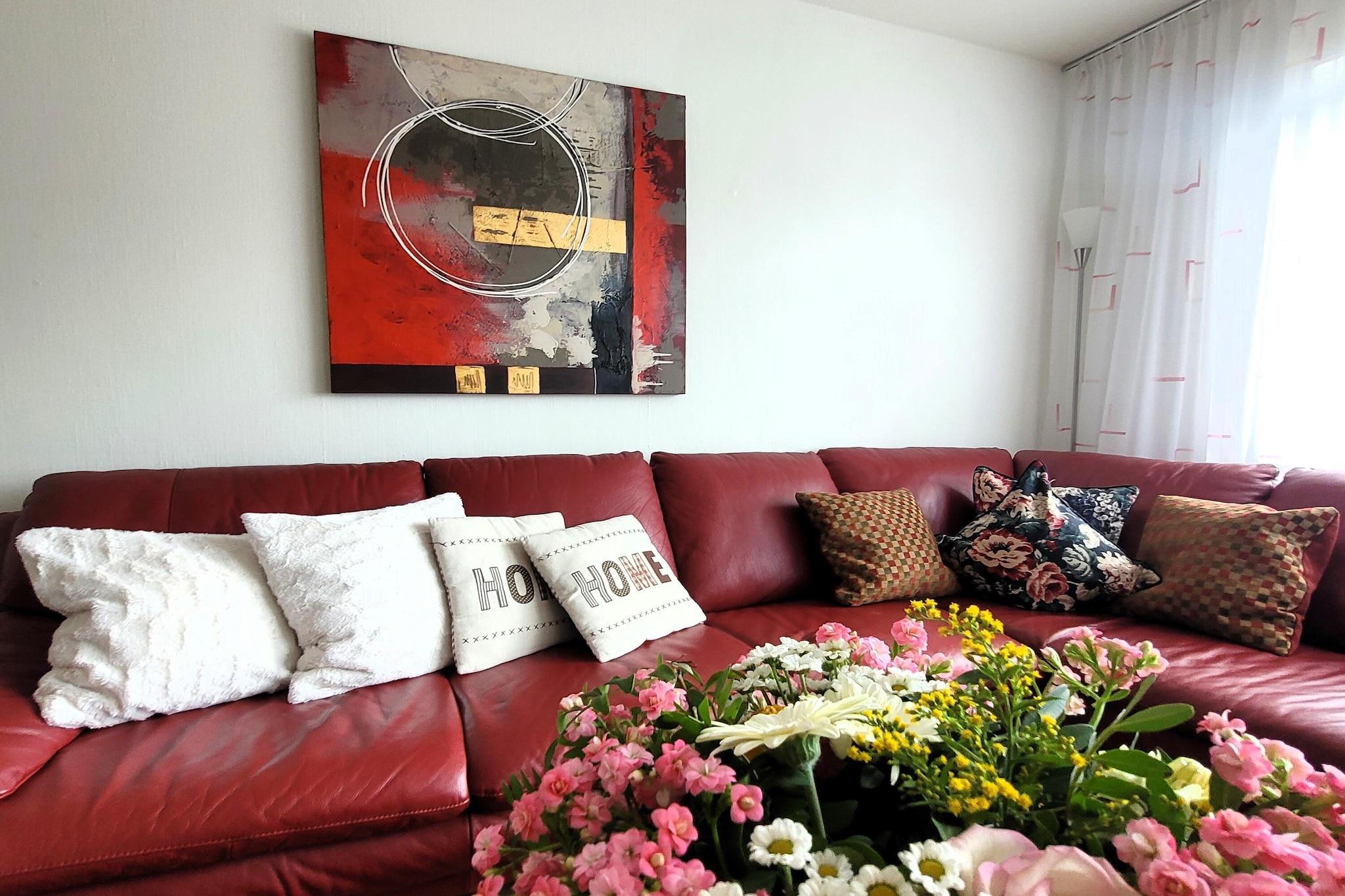 Stue(Fjernsyn, spisebord, sofahjørne), Køkken(elkedel, brødrister, komfur, kaffemaskine, ovn, mikrobølgeovn, opvaskemaskine , køleskab), soveværelse(dobbeltseng), soveværelse(dobbeltseng), badeværelse(bruser, håndvask, toilet, føntørrer), tørretumbler, vaskemaskine, balkon, parkering