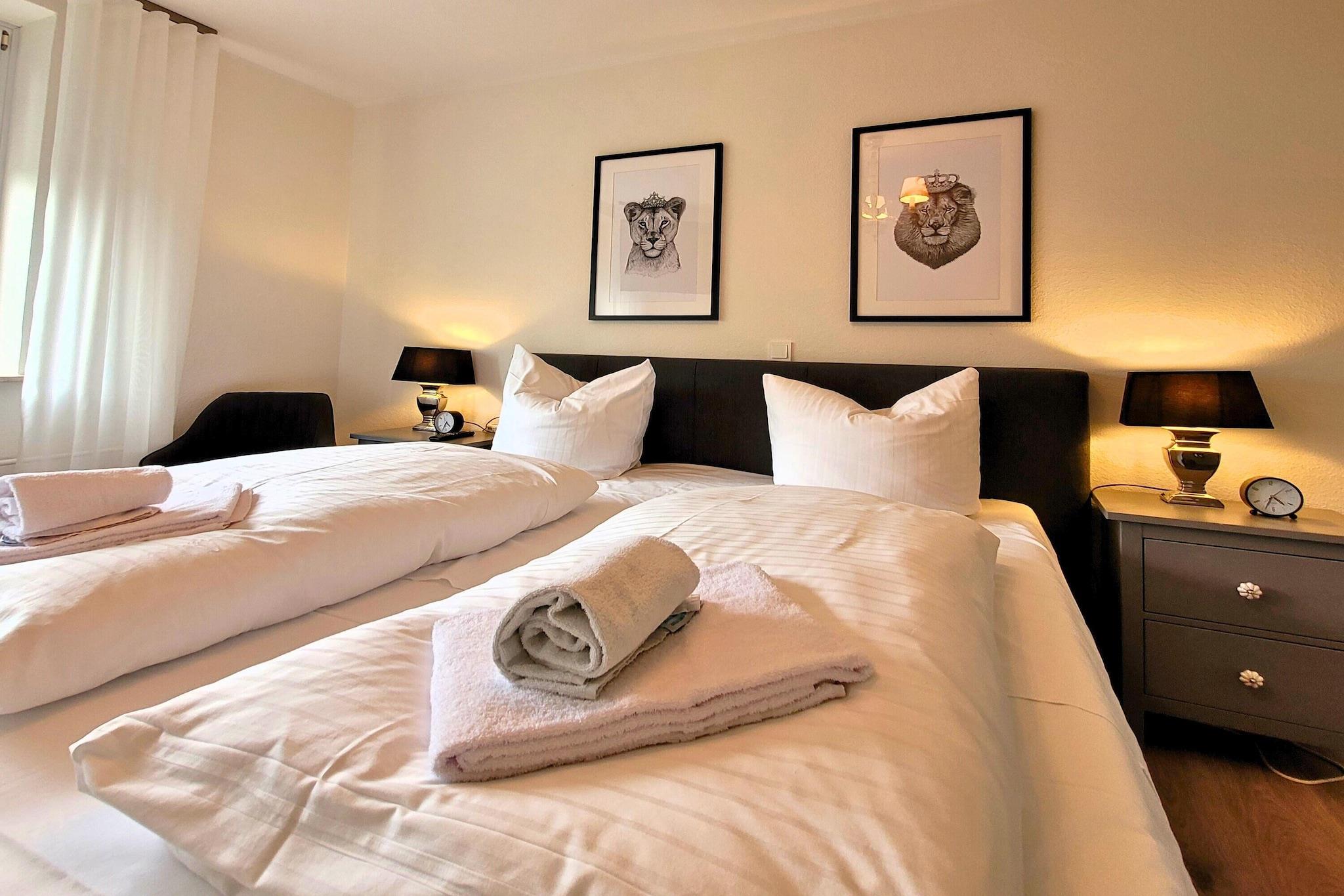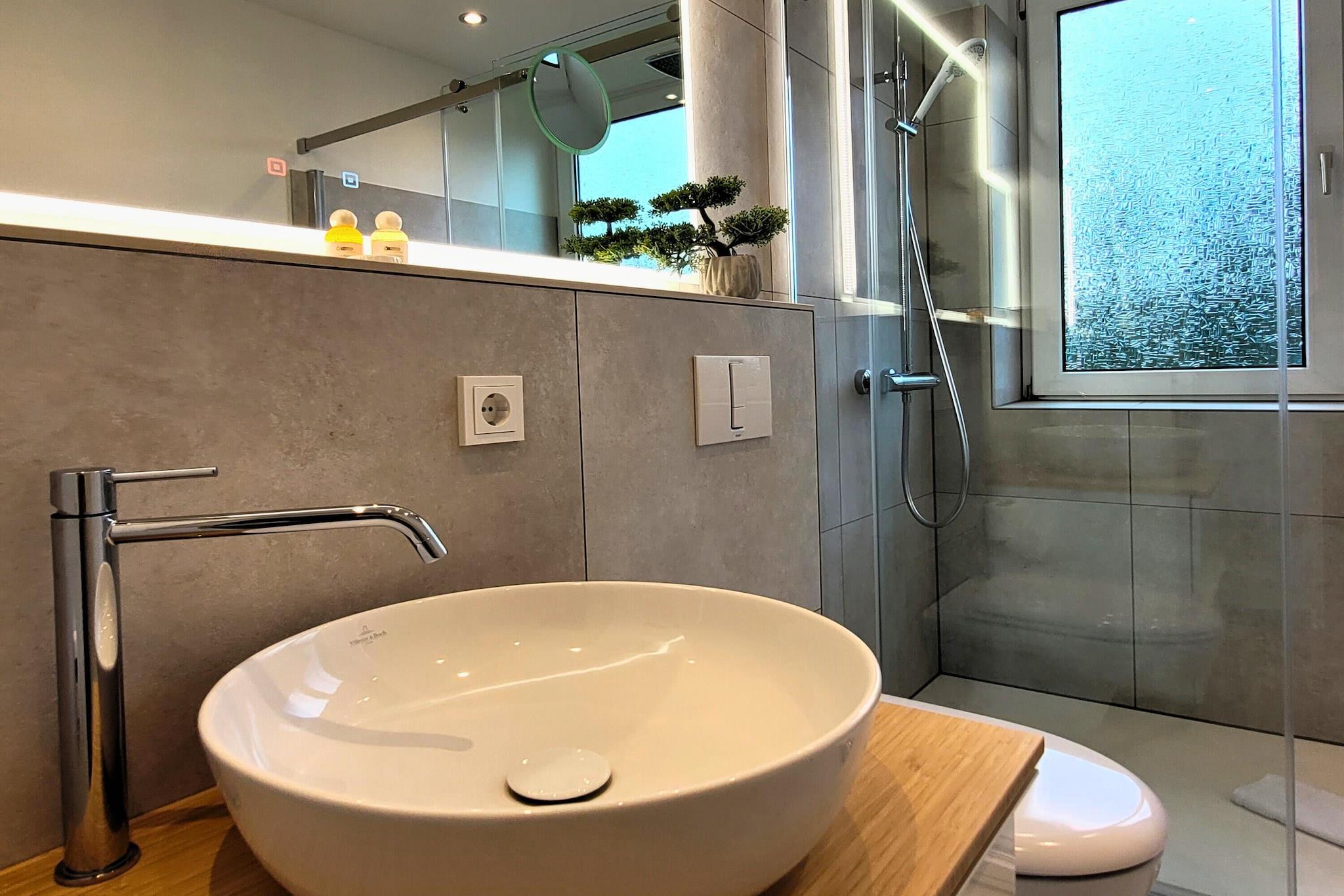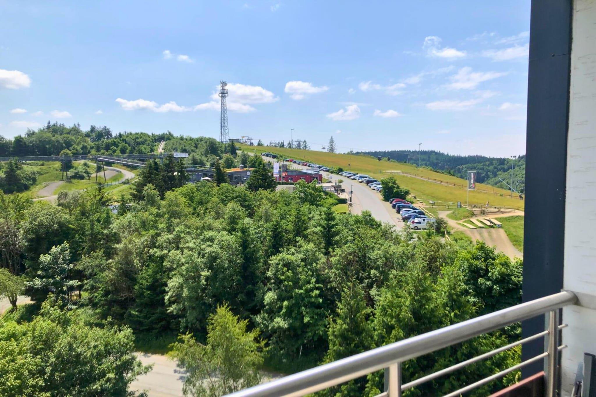Den attraktive og meget komfortable Winterberg-lejlighed tilbyder cirka 55 m² boligareal, bestående af en entré, et badeværelse med badekar/bruser/toilet/vaskemøbel, et moderne køkken med opvaskemaskine, keramisk kogeplade, ovn osv., et soveværelse med et andet tv og en dobbeltseng samt en rummelig stue-spisestue med en ekstra sovesofa i stuen til en tredje og fjerde gæst. Netflix er installeret på stuens tv. Den sydvestvendte balkon tilbyder en smuk udsigt over den berømte Winterberg bobslædebane. Kappe Adventure Mountain, utallige vandrestier, skisportsstederne og Winterbergs centrum ligger inden for gåafstand. Lejligheden er tilgængelig for kørestolsbrugere via en elevator. Et skiopbevaringsrum og et fritidsrum for unge er tilgængelige i bygningen. Lejligheden har en garage foran bygningen. Lejligheden ligger på 5. sal med elevator.