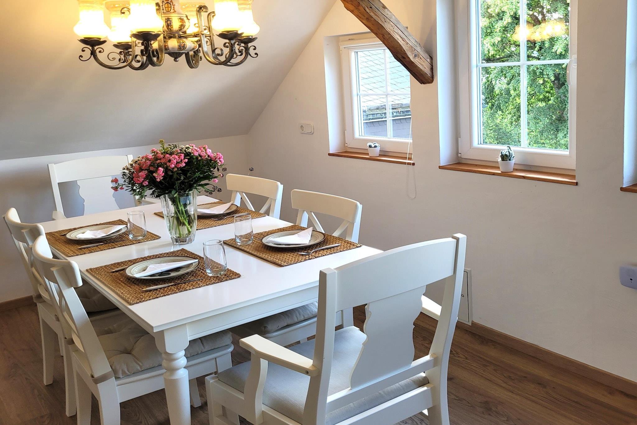 Nyd et komfortabelt og bekvemt ophold i denne indbydende lejlighed beliggende i hjertet af Winterberg, ideel til familier eller to par, der søger et afslappende tilflugtssted. Med to stilfuldt møblerede soveværelser og moderne faciliteter overalt er det den perfekte base for at nyde byen og dens naturskønne omgivelser. Lejligheden har en hyggelig opholdsstue med tv og et spisebord til fælles måltider eller afslappede aftener. Det fuldt udstyrede køkken inkluderer kaffemaskine, brødrister, ovn, mikrobølgeovn og opvaskemaskine - alt hvad du behøver for nemt at tilberede dine yndlingsretter. Begge soveværelser har dobbeltsenge og tv, hvilket giver rigelig komfort og privatliv. Lejligheden har også et hovedbadeværelse med bruser, toilet og hårtørrer, samt et ekstra separat toilet for ekstra bekvemmelighed. Lejligheden ligger kun få minutter fra Winterbergs skiliftkarrusel, bobslædebane og St. Georg-skihopbakken og tilbyder hurtig adgang til udendørsaktiviteter året rundt. Uanset om du står på ski om vinteren eller vandrer og cykler om sommeren, finder du uendelige eventyr i nærheden. Ejendommen inkluderer også en privat garage og parkeringsplads, hvilket gør det nemt at udforske den omkringliggende Sauerland-region i dit eget tempo.