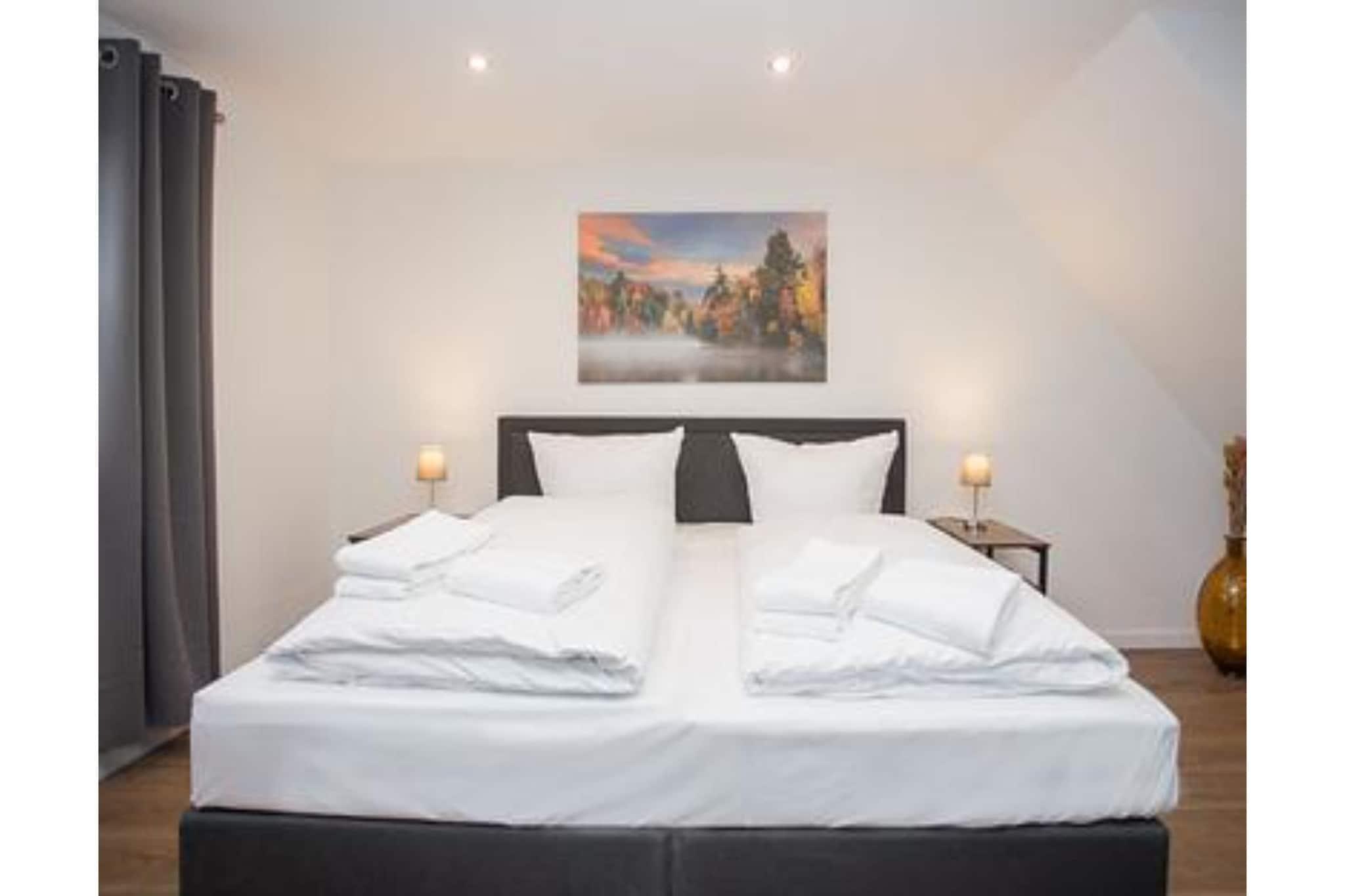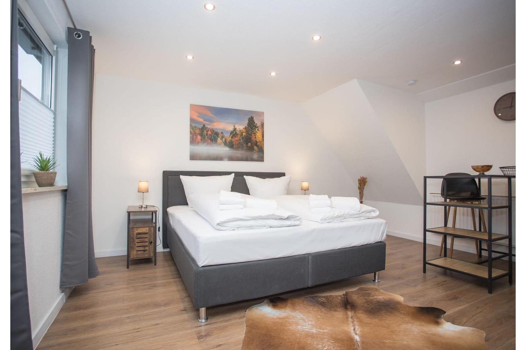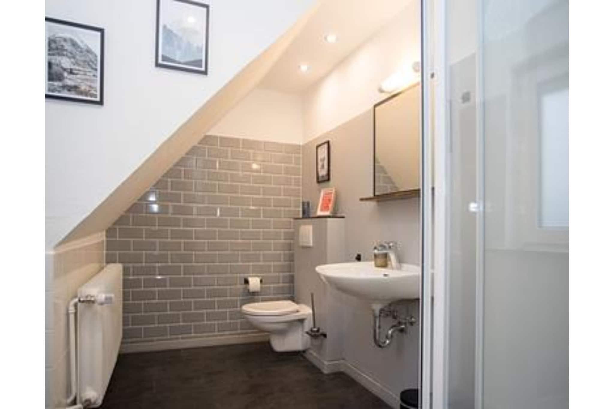 Velkommen til feriehuset – jeres rummelige gruppeindkvartering i hjertet af Winterberg! Uanset om det er til familieferie, en tur med vennerne eller et holdarrangement, tilbyder dette hus plads til op til 20 personer og kombinerer komfort med en førsteklasses beliggenhed. Fordelt på flere etager finder I 10 soveværelser, 5 badeværelser (inklusive et separat brusebad) og to fuldt udstyrede køkkener med spiseplads. Den hyggelige terrasse med haveborde af træ inviterer jer til at nyde lange aftener udendørs. Et stort opbevaringsrum er tilgængeligt til ski, snowboards eller vandreudstyr. Indretning: I stueetagen er der et praktisk opbevaringsområde; på første sal er der 6 soveværelser, et toilet og et brusebad; og på øverste etage en lille lejlighed med opholdsområde, køkken og tre soveværelser. Den centrale beliggenhed er ideel: kun få minutters gang til skiliftens karrusel, Kappe-eventyrbjerget, bobslædebanen, cykelparken og bymidten. Winterberg er perfekt til aktive feriegæster året rundt – uanset om det er skiløb, vandreture, kælkning eller cykling.