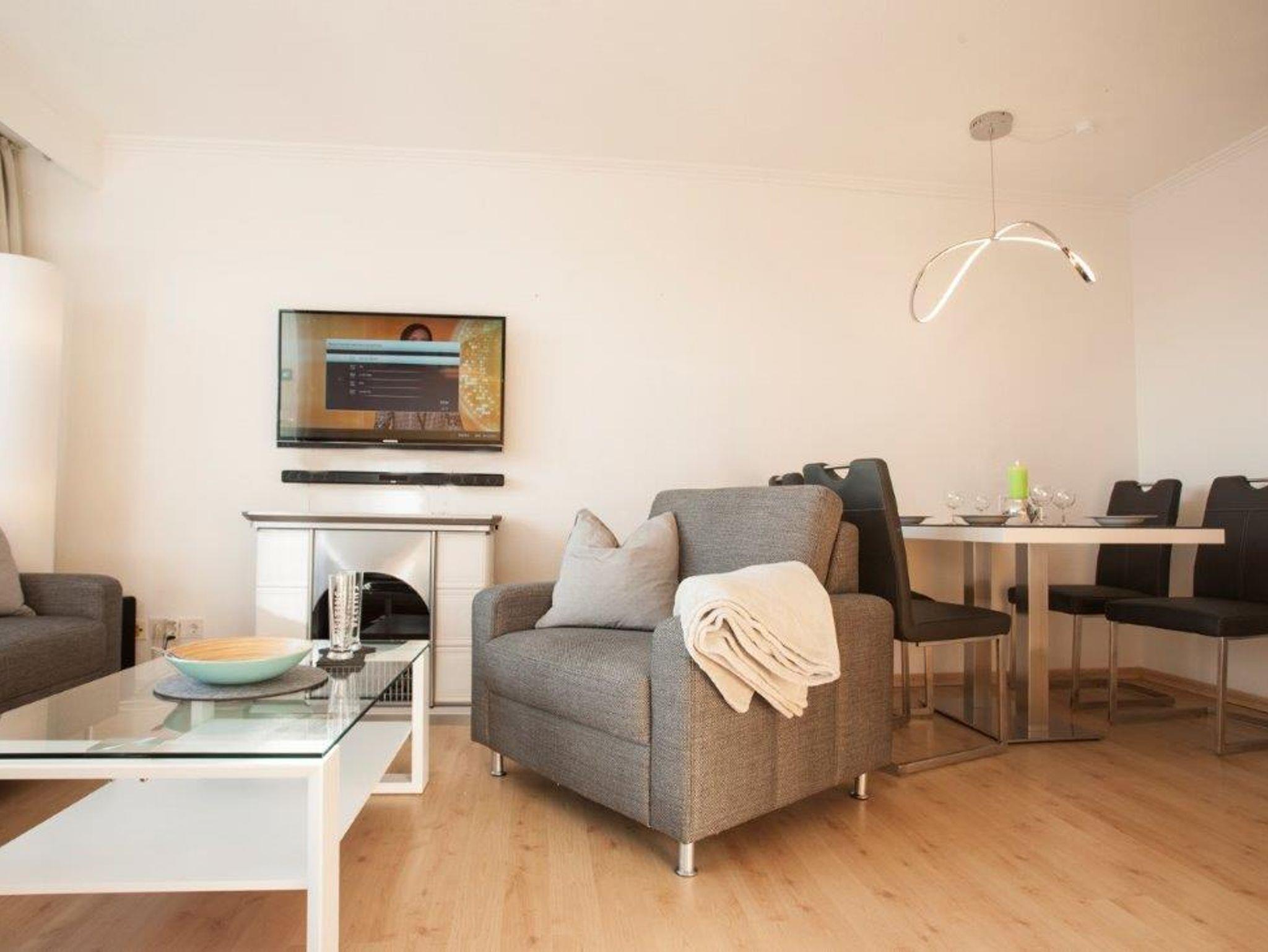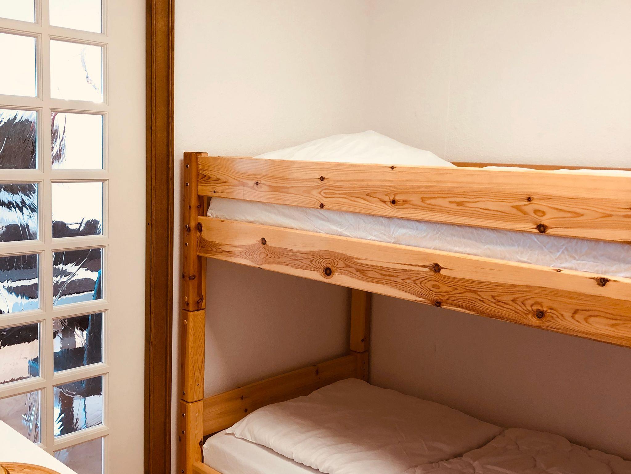 Das zentral gelegene Appartement wurde 2017 renoviert. Der große Raum ist unterteilt in einen Wohn- und Essbereich und abgetrennter Küche. Es gibt ein gemütliches Sofa, eine Essecke und ein Schrankbett für 2 Personen. Im 2. Schlafbereich stehen zwei Einzelbetten als Etagenbett zur Verfügung. Die Küche ist komplett und bietet allen Komfort.