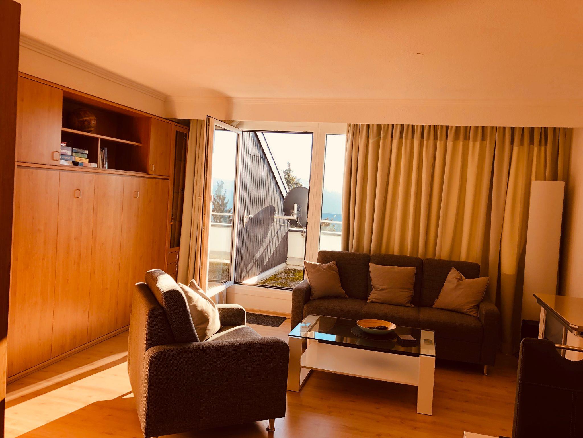 Der große Balkon lädt zum Sonnenbaden ein. Darüber hinaus können Sie die Wellnesseinrichtungen der Ferienanlage wie Sauna, Schwimmbad und Solarium nutzen. Des Weiteren gibt es einen Abstellraum für Skier und Fahrräder.