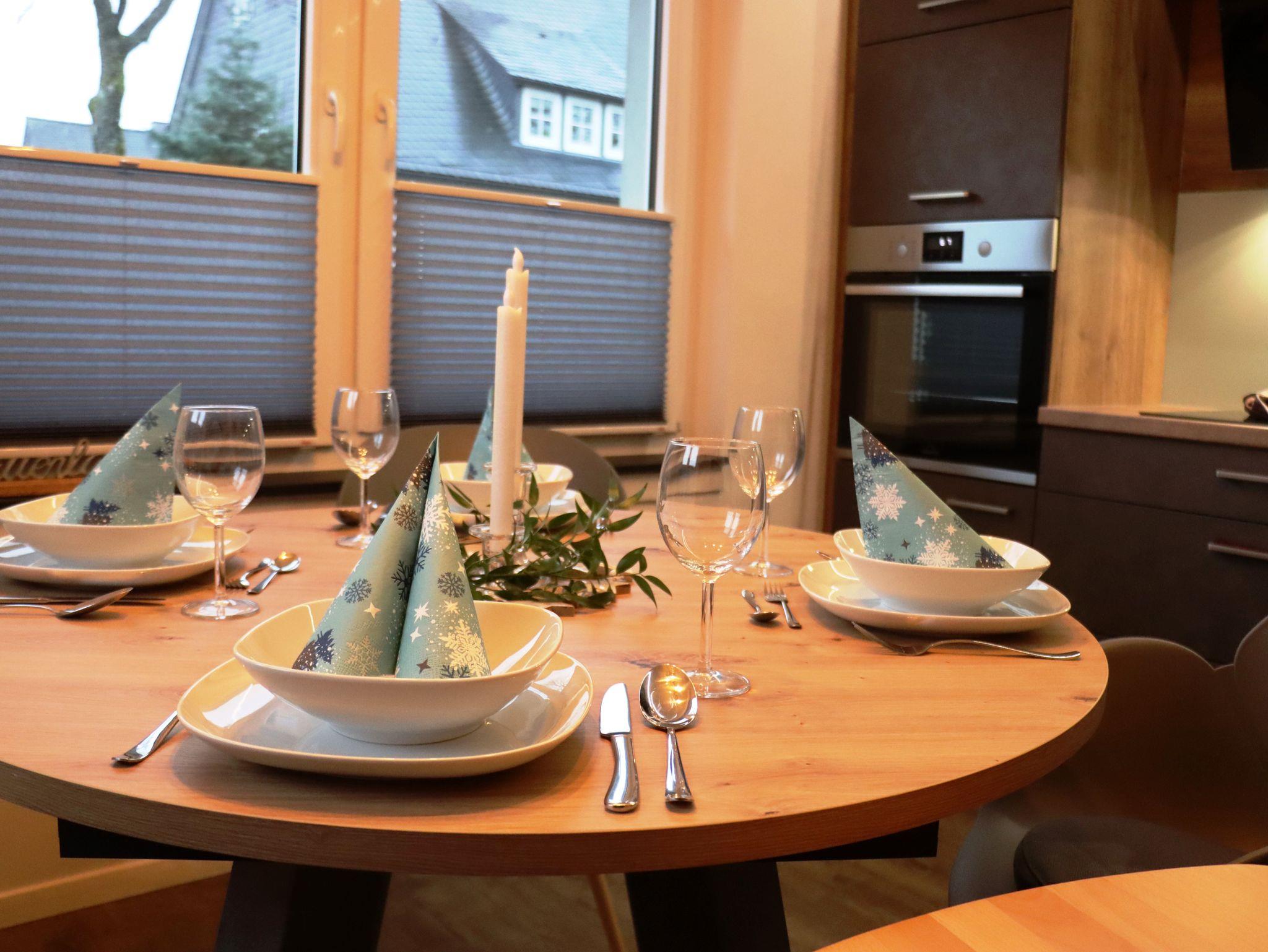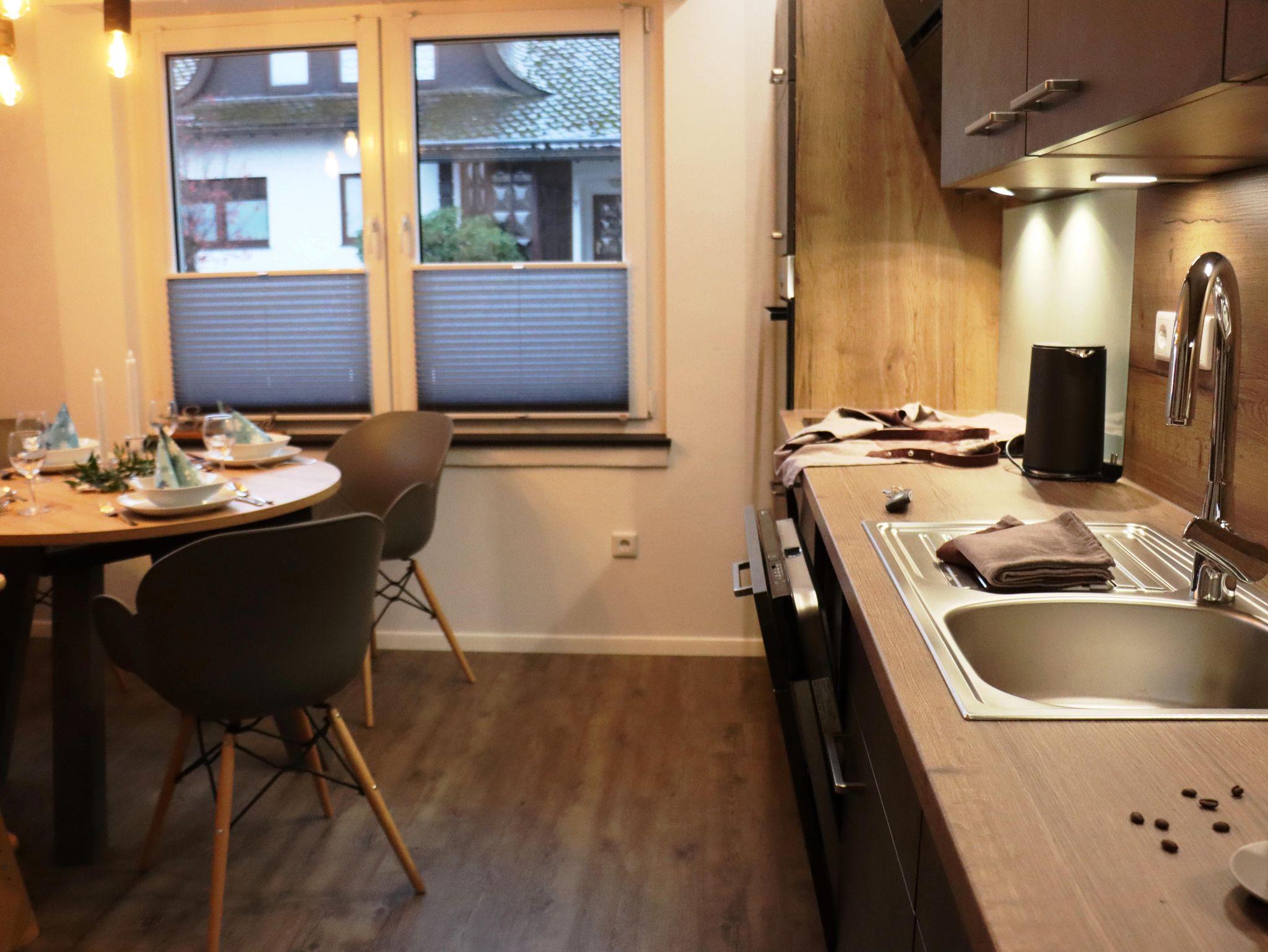 Die Küche verfügt über sämtlichen Komfort wie z.B. Kaffeemaschine, Wasserkocher, Backofen, Mikrowelle, Induktionskochfeld, große Kühl-Gefrierkombi, Toaster, Web-Radio mit Bluetooth-Anbindung und der Möglichkeit zum Musikstreamen via Spotify und vielem mehr.