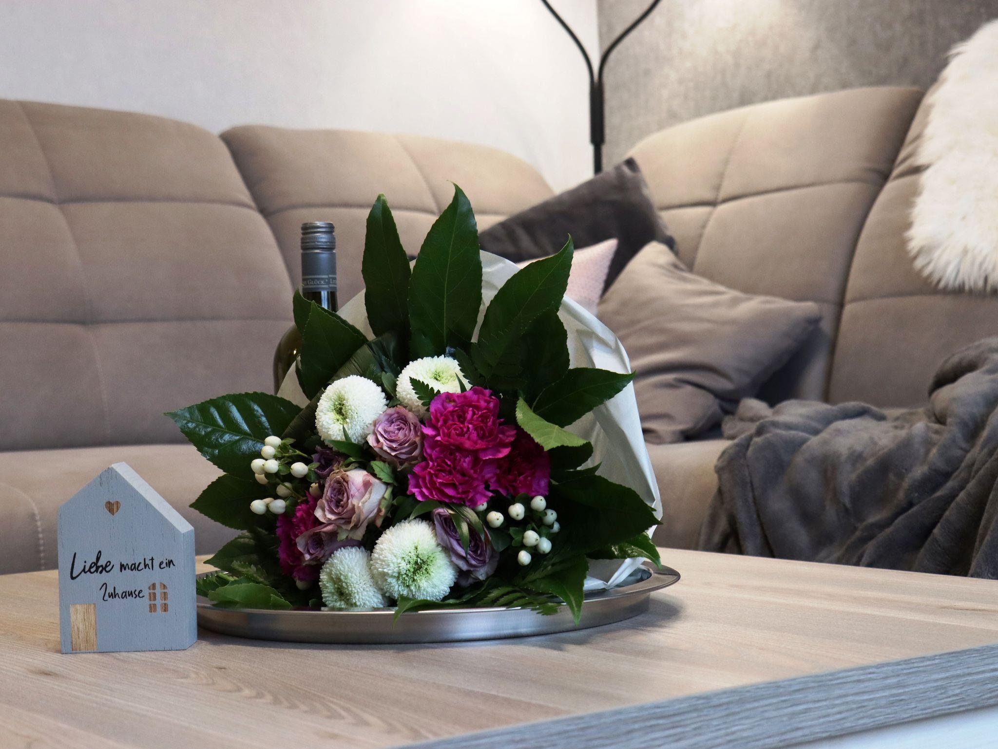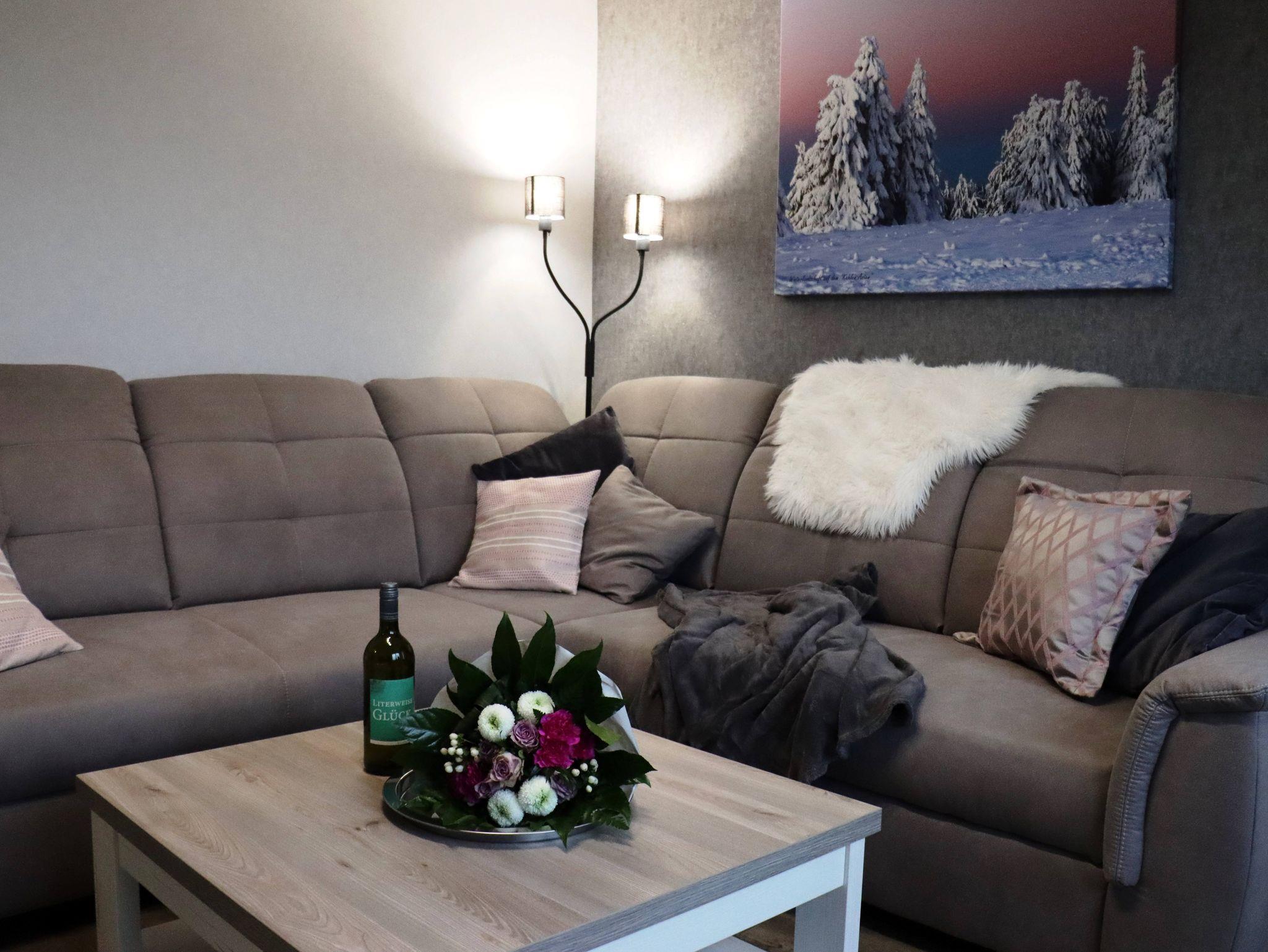 Im Wohnzimmer bietet eine gemütliche Couch Gelegenheit zum Entspannen, Lesen, Spielen oder einfach für ein gutes Glas Wein (Spiele und Bücher haben wir für Euch parat gelegt).