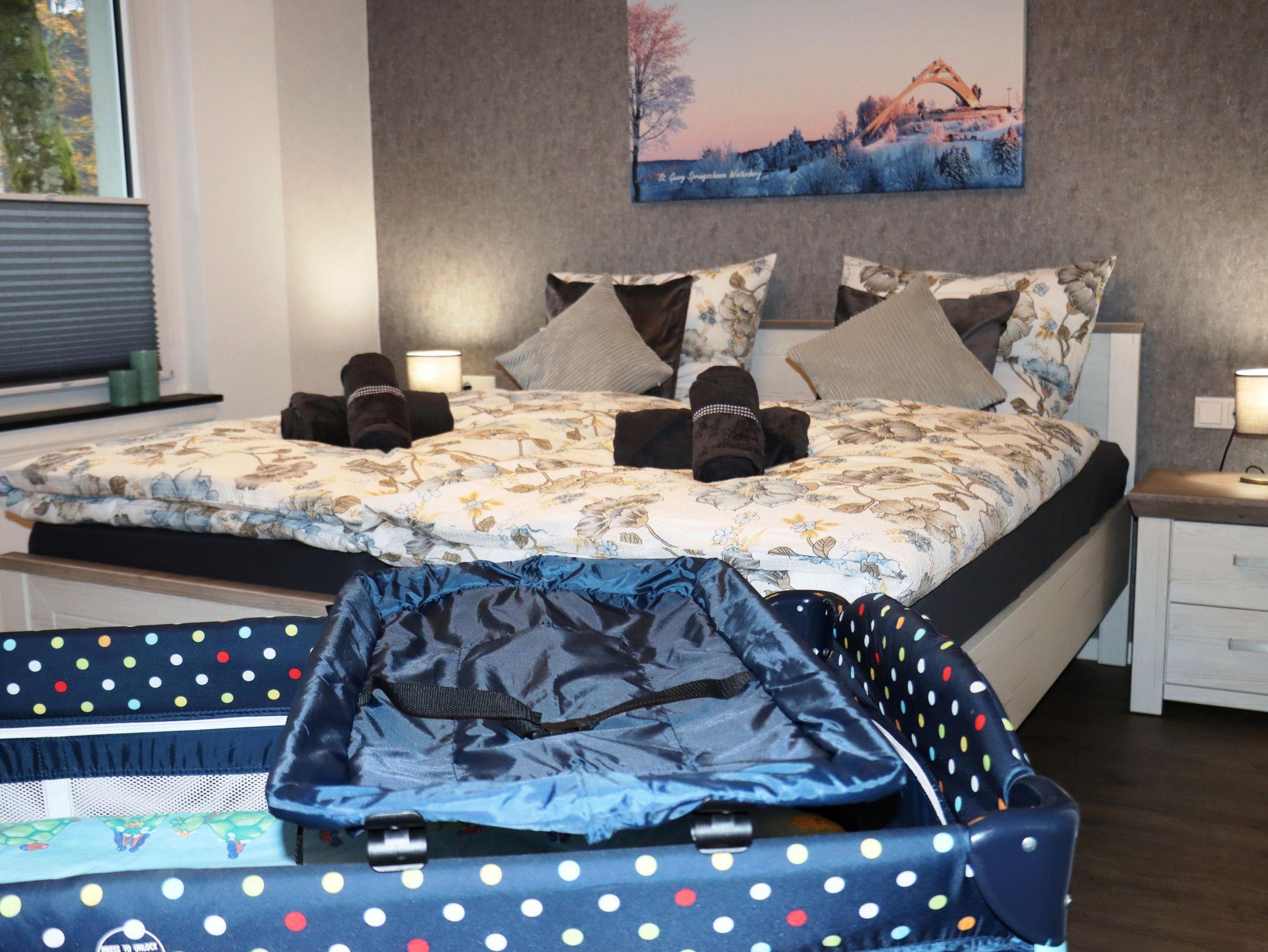 Ein Babybett kann auf Anfrage kostenfrei zur Verfügung gestellt werden.