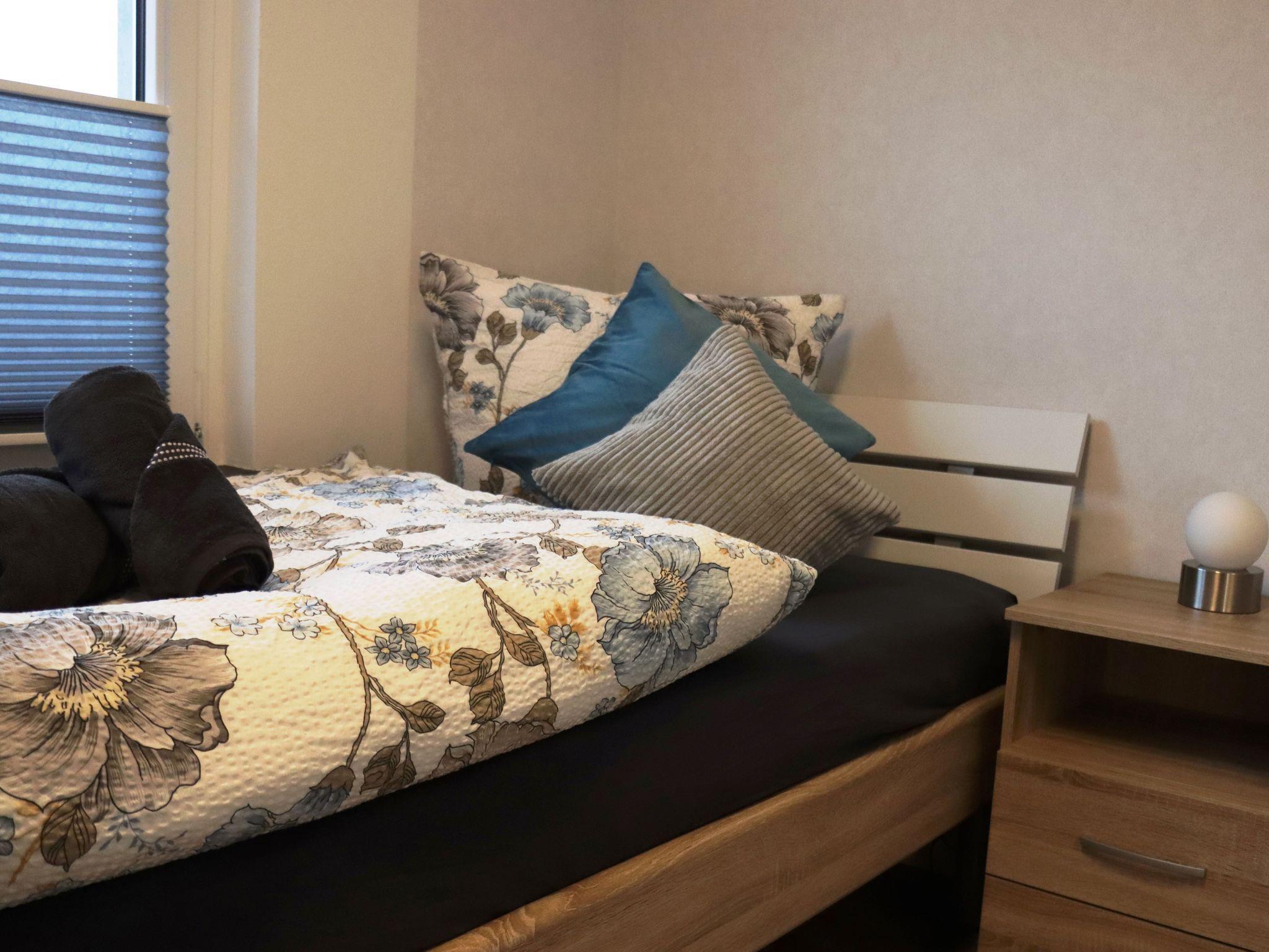 Das große Schlafzimmer ist ausgestattet mit Doppelbett, Kleiderschrank und Möglichkeit für das Aufstellen eines zusätzlichen Babybettes (wird Euch auf Anfrage inklusive Wickelablage kostenlos zur Verfügung gestellt). Im kleineren Schlafzimmer sorgen zwei Einzelbetten und ein geräumiger Kleiderschrank für Behaglichkeit.