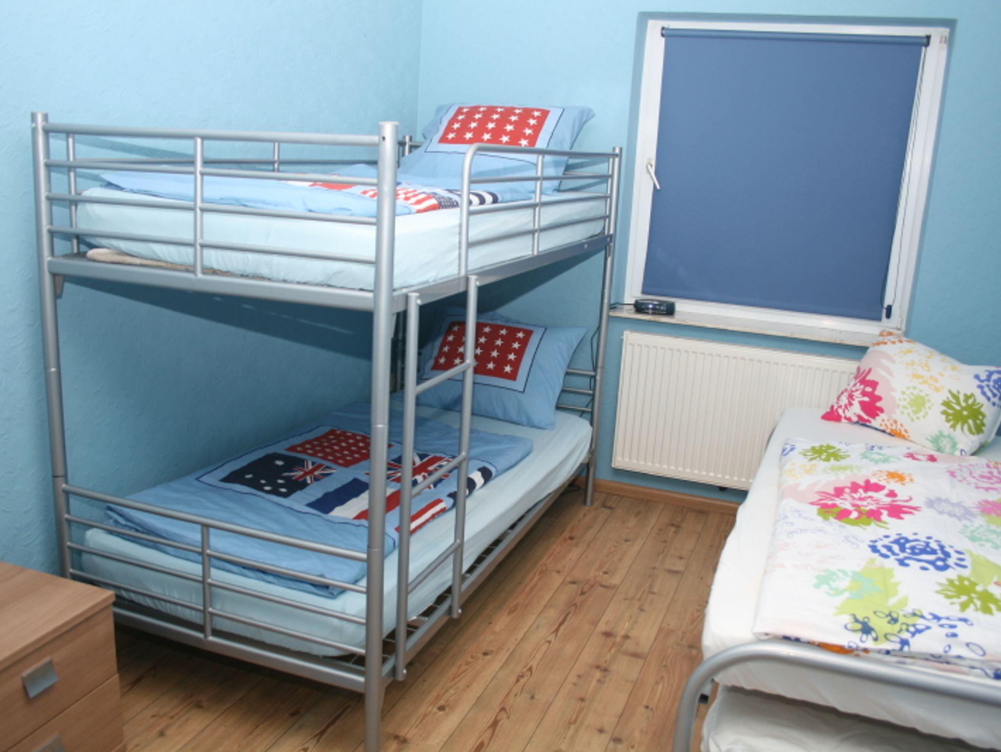 Slaapkamer met stapelbed en 1*1-persoons bed.