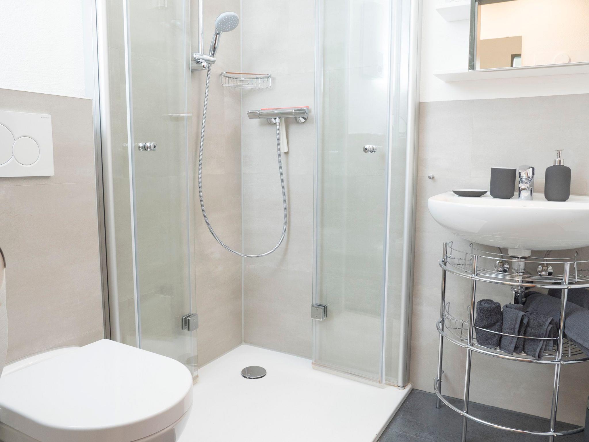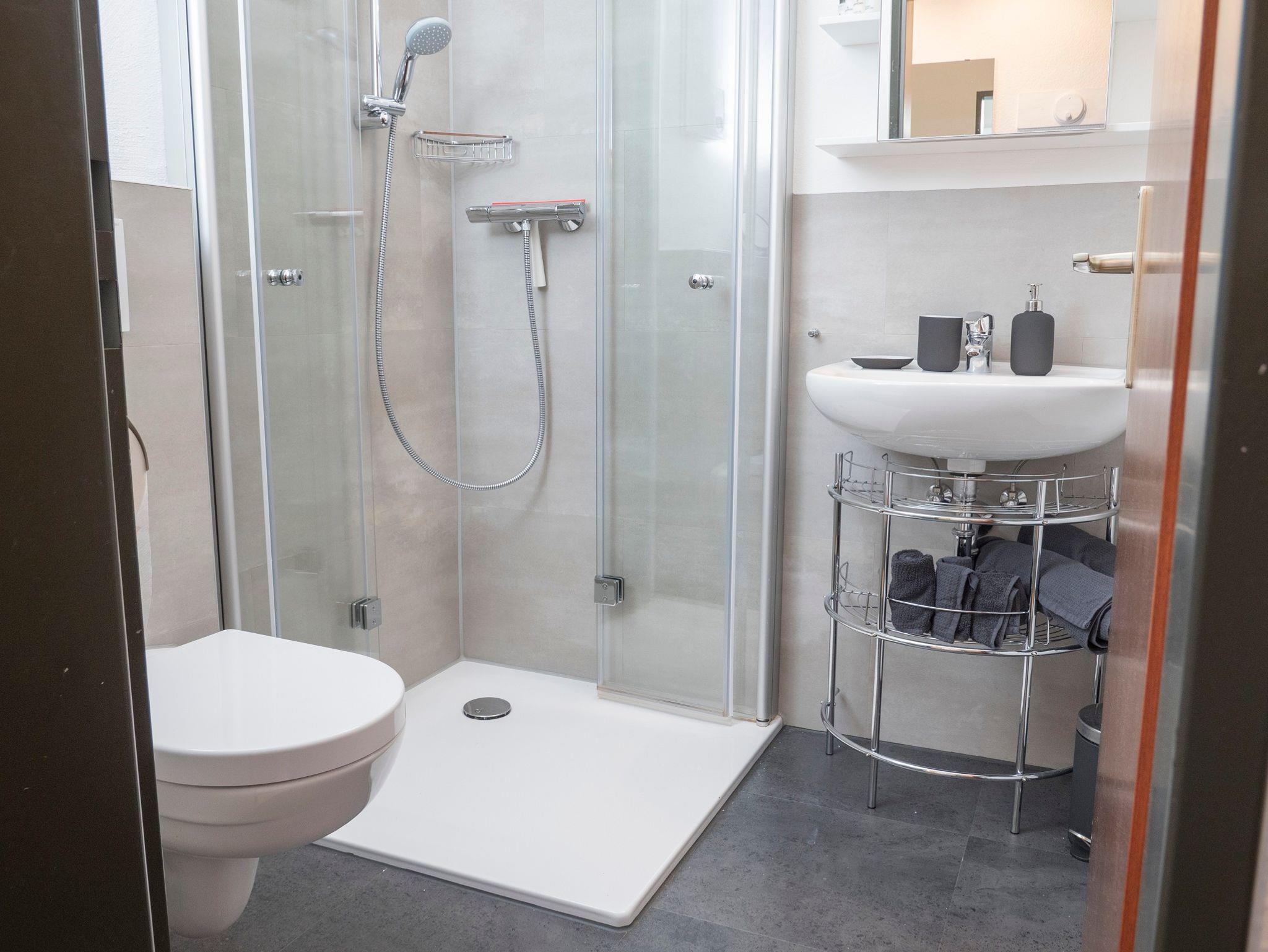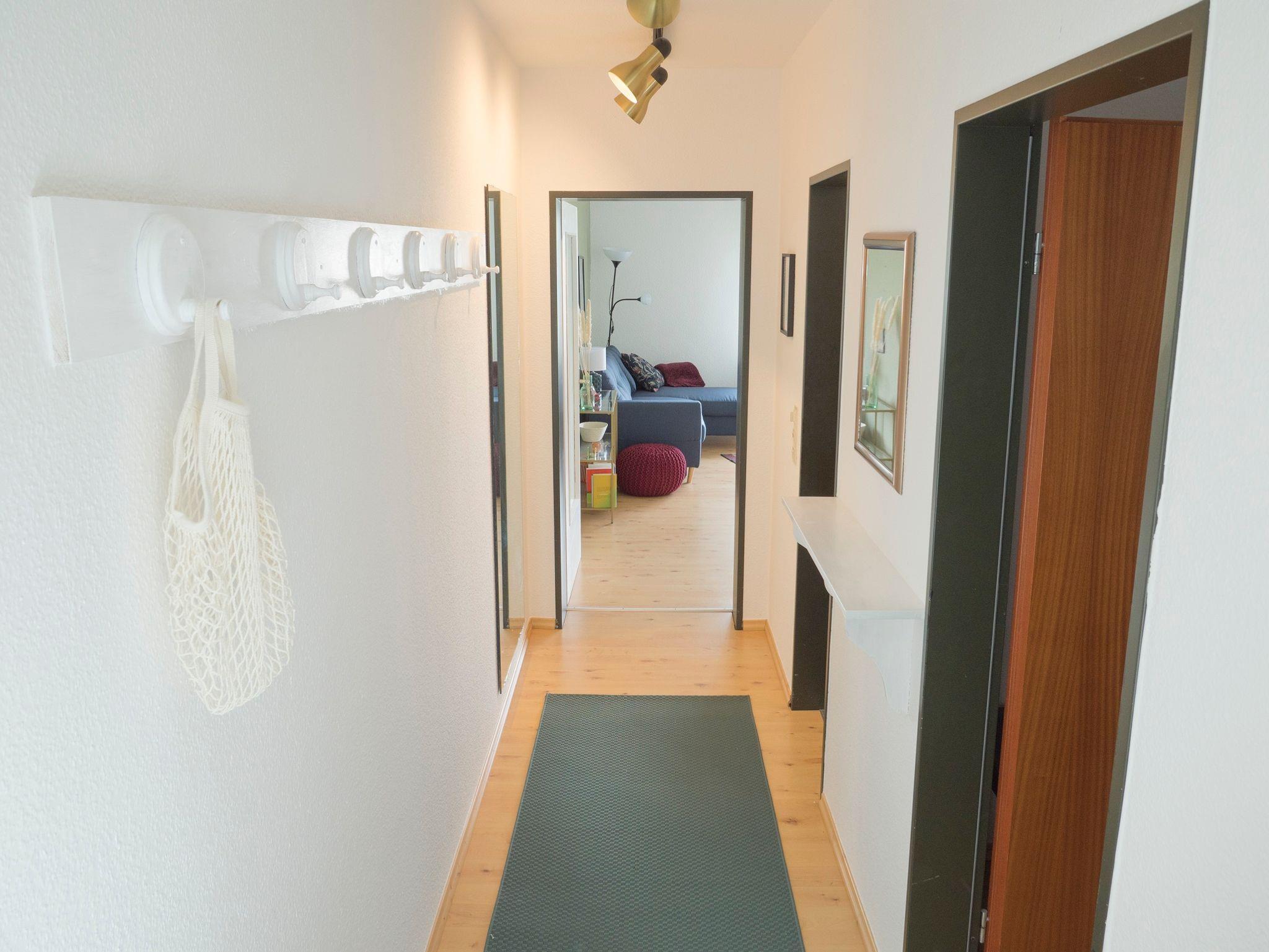 Die Wohnung verfügt über einen großzügigen Essbereich, eine Küche, ein eigenes Badezimmer mit Dusche, Haartrockner, Kleiderschrank, Flachbildfernseher, DVD-Player, Radioanlage, Bücher, Gesellschaftsspiele und über eine Waschmaschine mit Gemeinschaftstrockenraum.