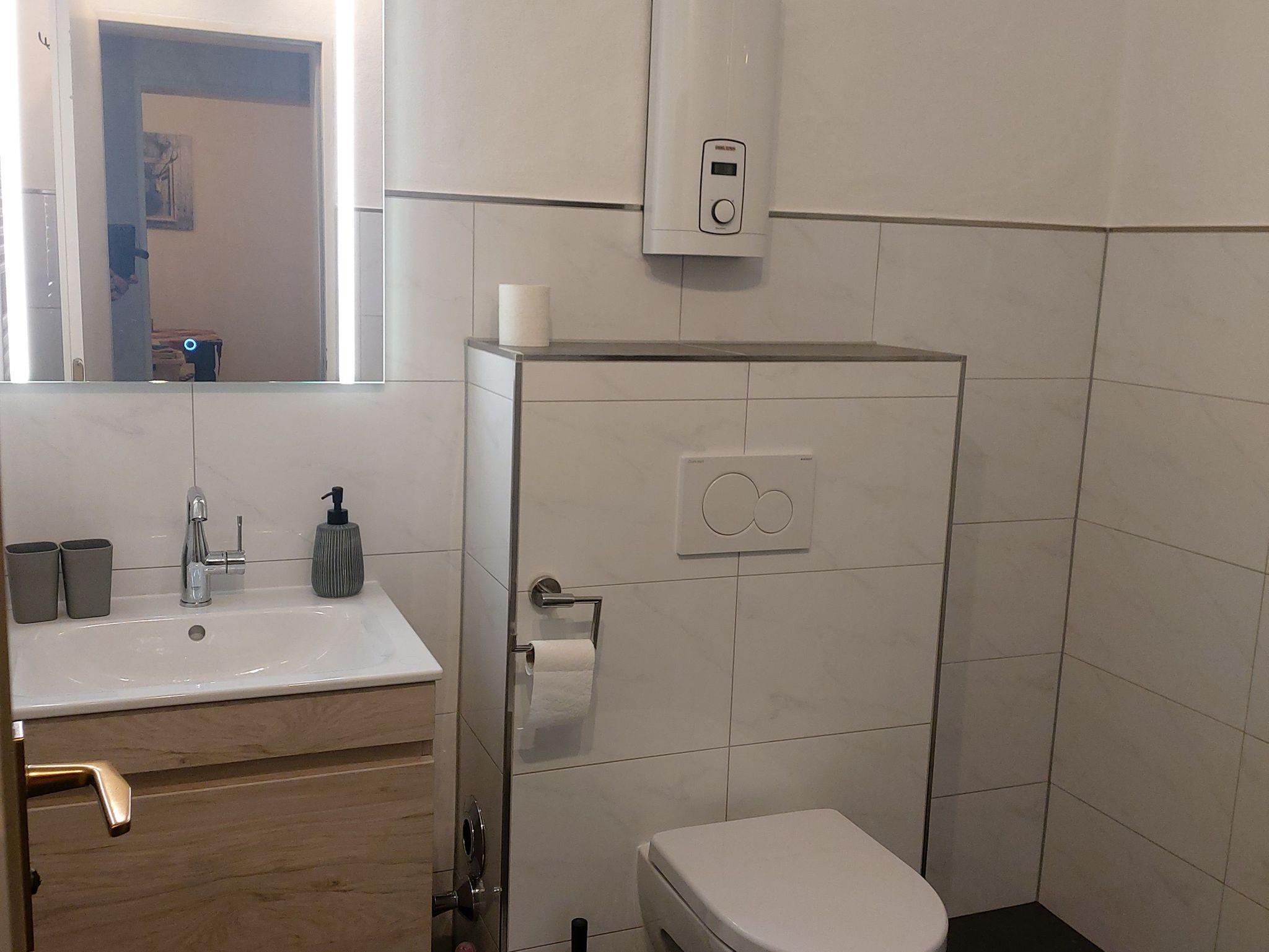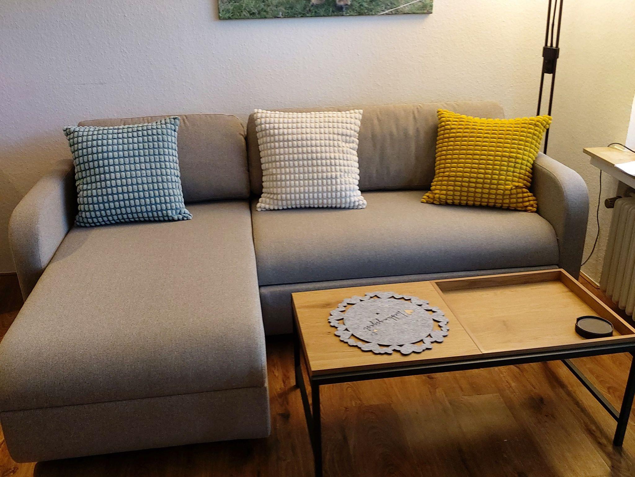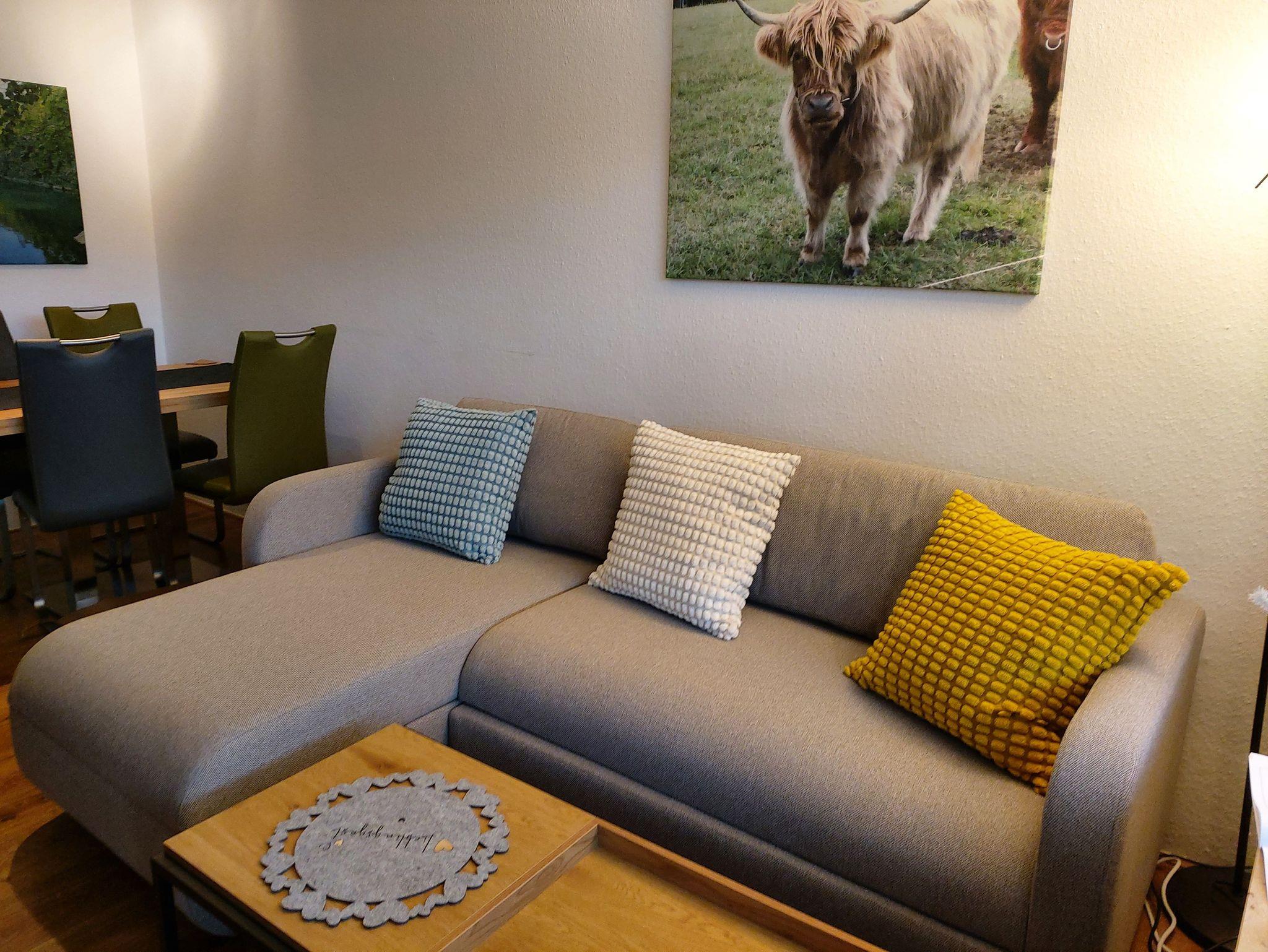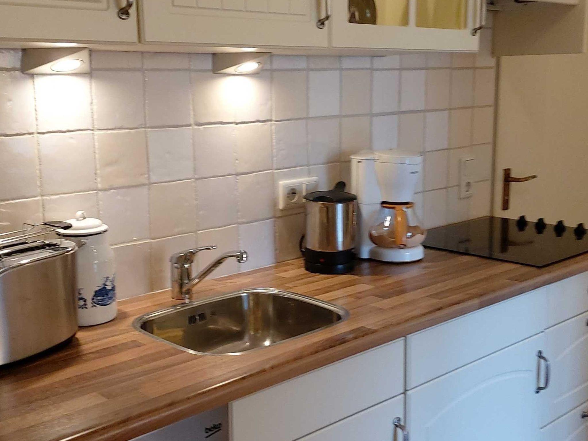 Küche mit Geschirrspüler, Kaffeemaschine, Mikrowelle, Wasserkocher, kostenloses Wlan uvm. Schlafzimmer mit Boxsprigbett. Terrasse mit großem Garten und Liegewiese.
