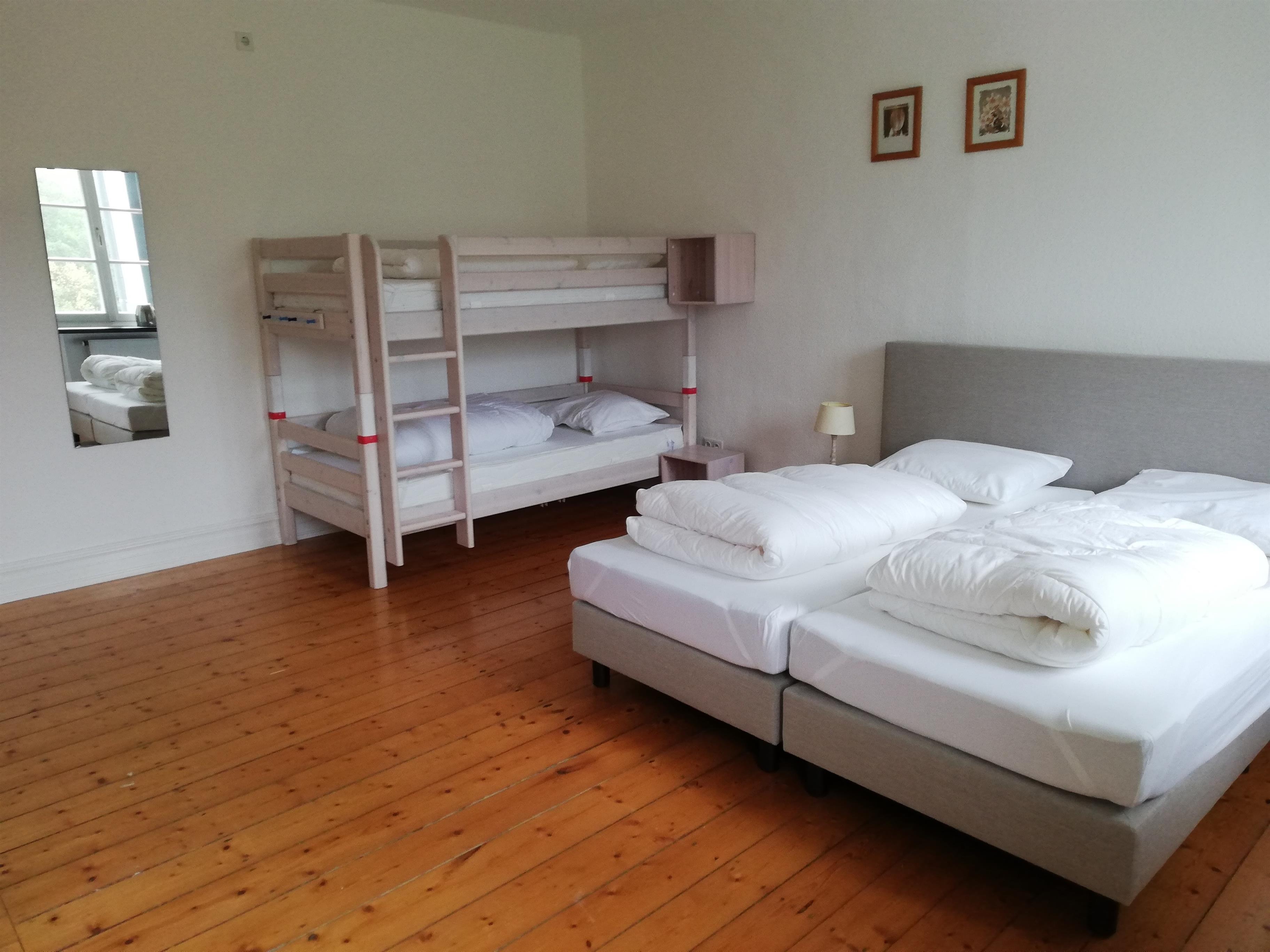 Es gibt zwei Schlafzimmer, eines mit 2 Einzel-Boxspringbetten und ein Etagenbett, und das andere Schlafzimmer verfügt über ein Doppelbett.