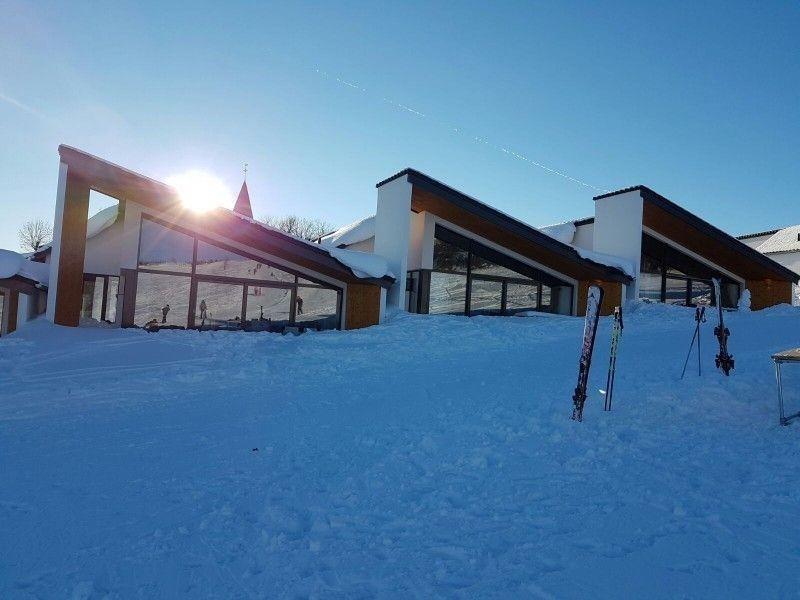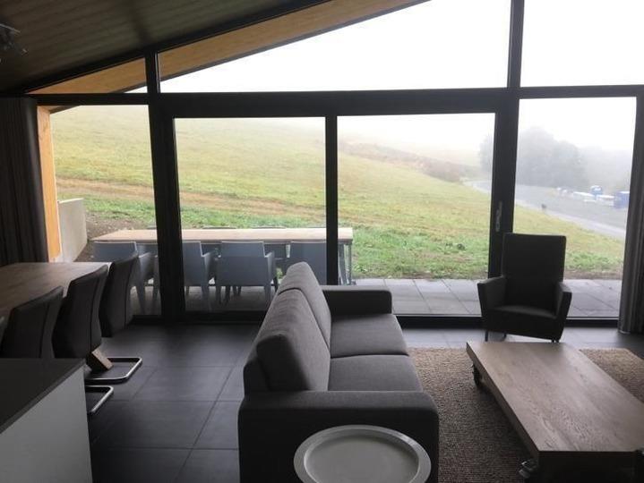 Die großen Fenster bieten aus einer panaromic Blick auf die Skipiste zu leben. Durch die Schiebetüren Sie die überdachte Terrasse mit Terrasse betreten. Die beleuchtete Terrasse verfügt über einen großen Tisch mit ausreichend Liegen und einer Feuerstelle.