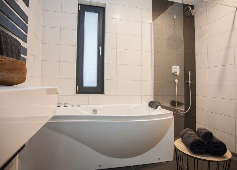 Das Wellness-Bad verfügt über einen Whirlpool und eine Infrarotsauna. Doppel-Waschbecken mit großer regen Dusche. Um das Gerät vollständig einen aktiven Urlaub zu entspannen.