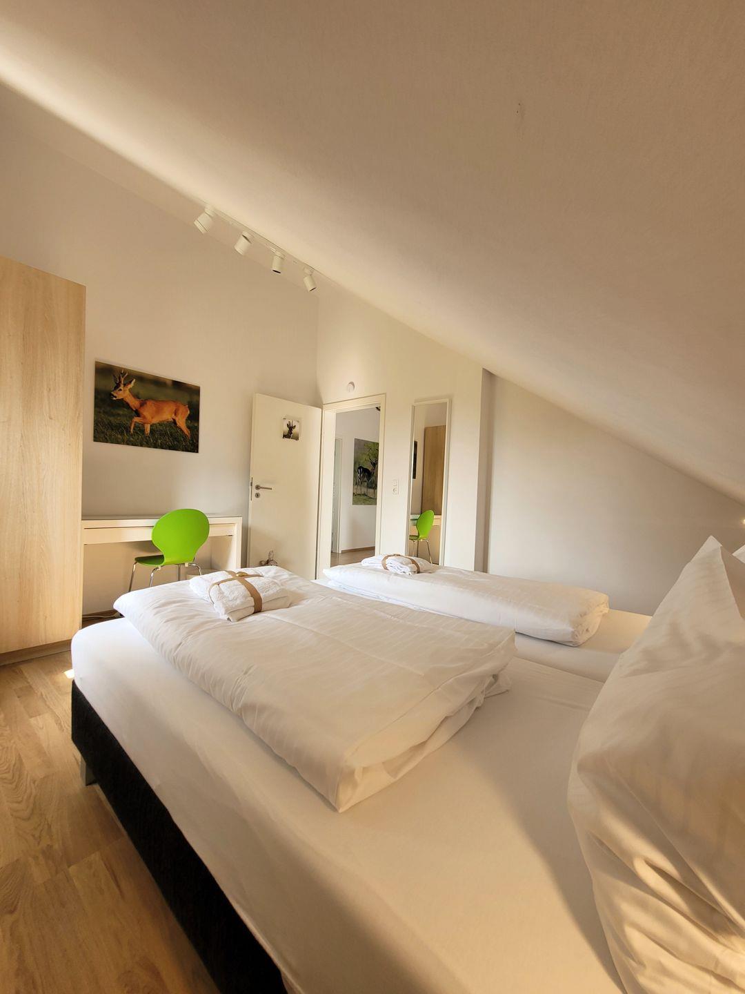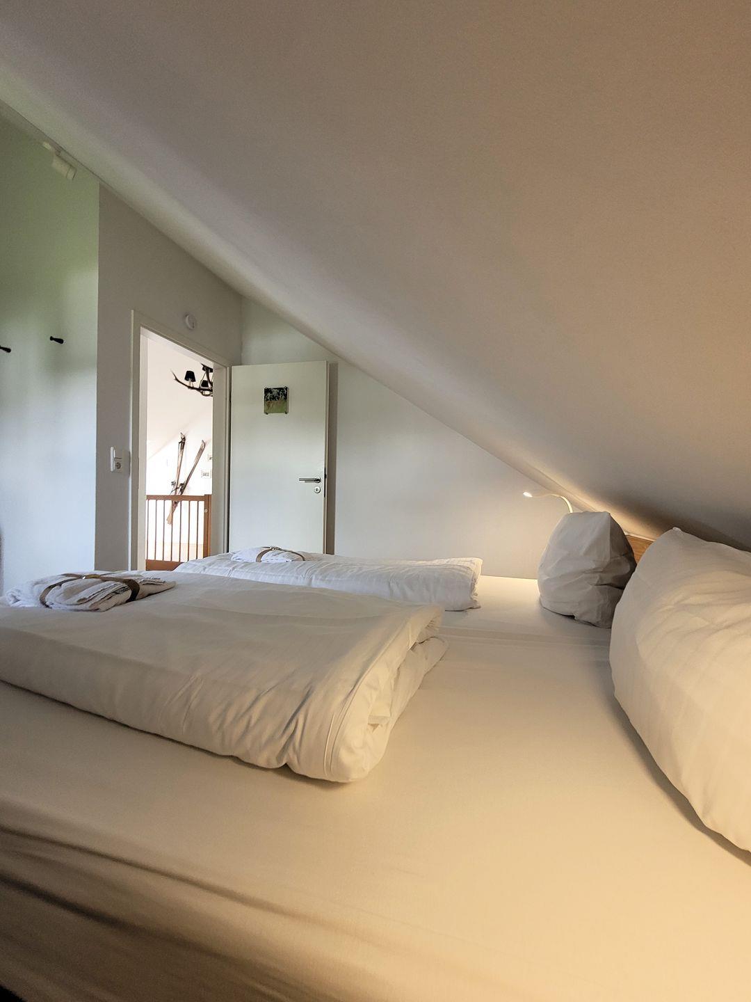 Insgesamt 135 m² Wohnfläche verteilen sich im Erdgeschoss auf eine Diele, ein großzügiges Wohnzimmer mit Essbereich und offener Küche und ein modernes Tageslichtbad mit Badewanne/Dusche/WC/Waschtisch sowie im Obergeschoss auf vier Schlafzimmer für jeweils zwei Personen und ein modernes Tageslichtbad mit Dusche/WC und Waschtisch. Das Wohnzimmer ist mit einem TV und einer Wii-Spielekonsole ausgestattet. Zu diesem First Class Chalet gehört ein Garten mit Terrasse in Westausrichtung, welche im Sommer mit Gartenmöbeln bestückt ist.