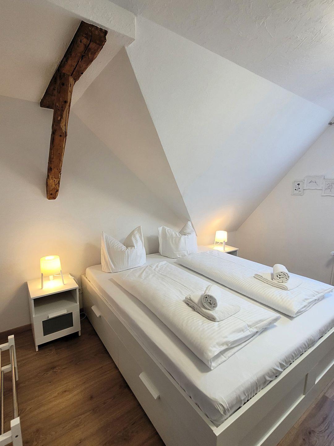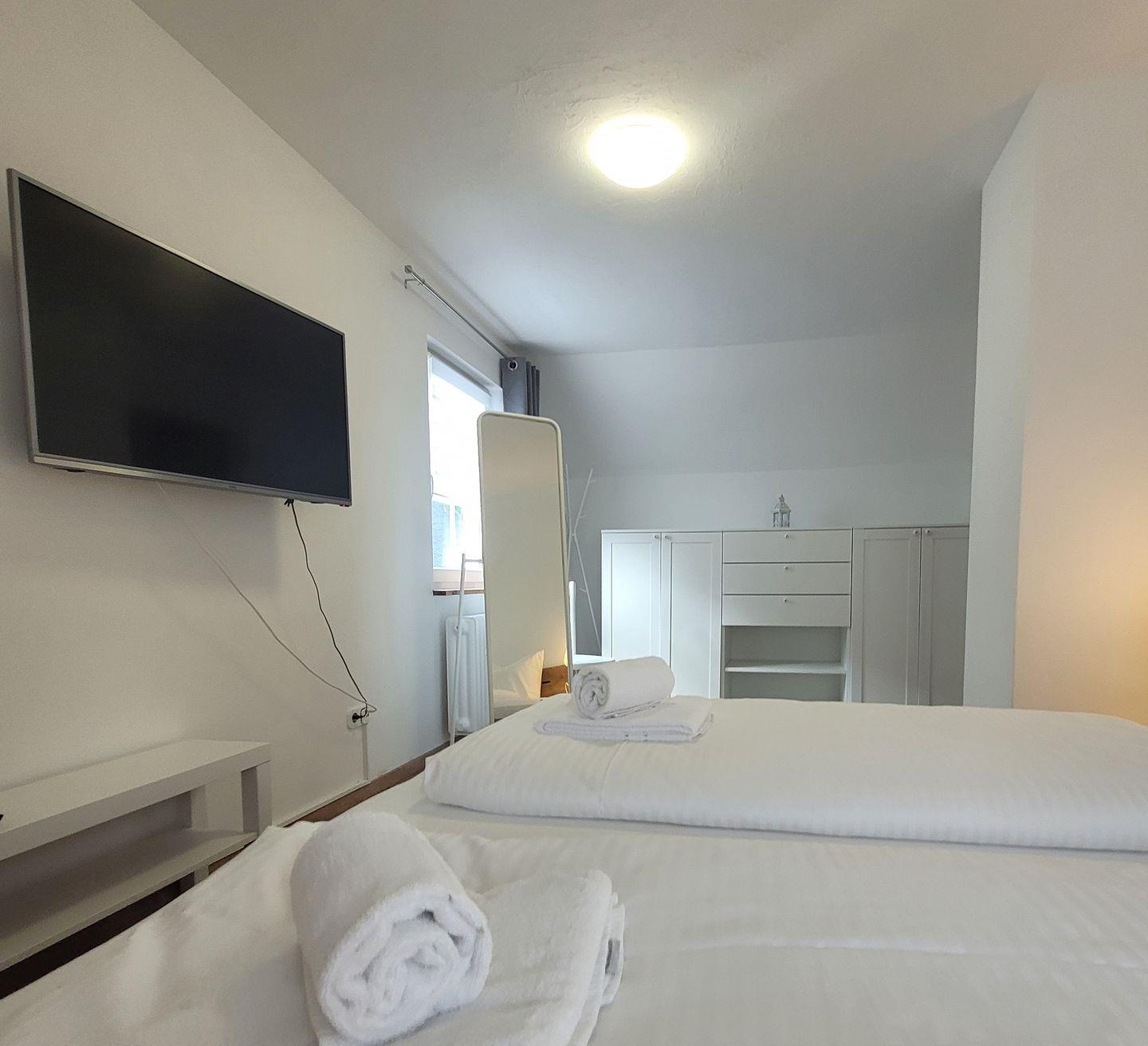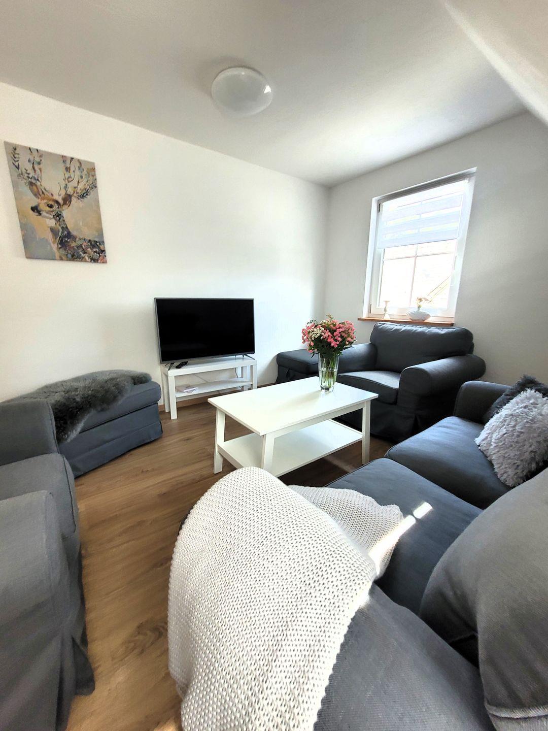 Insgesamt ca. 85 m² Wohnfläche verteilen sich auf eine Küche, ein Tageslichtbad mit Dusche/WC/Waschtisch, ein Gäste-WC, ein Wohnzimmer, ein Lesezimmer (Durchgangszimmer) und zwei Schlafzimmer, jeweils mit 1 Doppelbett und zusätzlichen Fernsehern.
