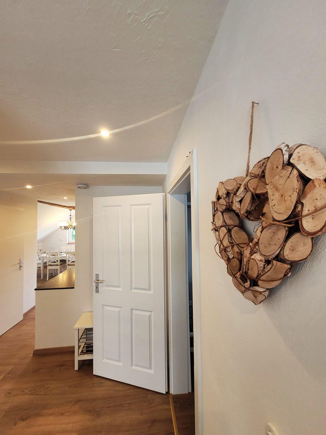 Zu dieser komfortablen Ferienwohnung gehört ein PKW-Stellplatz links neben dem Haus.