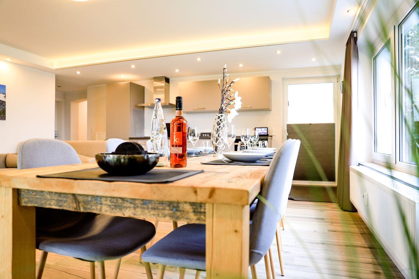 Die vollständig renovierte und hochwertig ausgestattete 4-Zimmer-Ferienwohnung im Untergeschoss erstreckt sich über eine Fläche von 122m² und bietet: