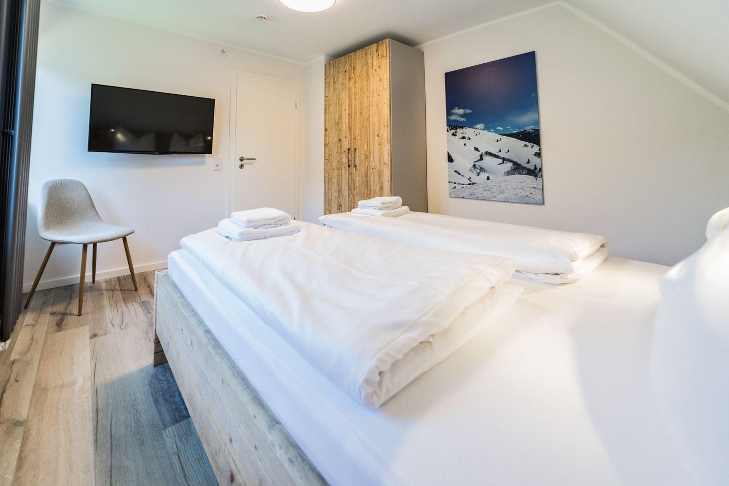 - Zwei Schlafzimmer mit Doppelbetten und Flachbild-TVs.