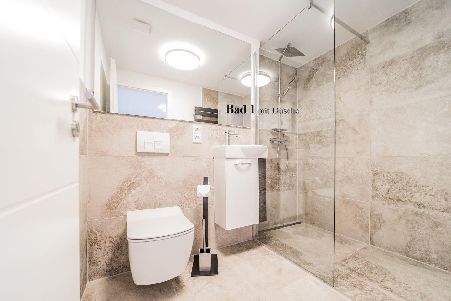 - Zwei moderne Duschbäder mit Rainshower-Duschen und Föhn.