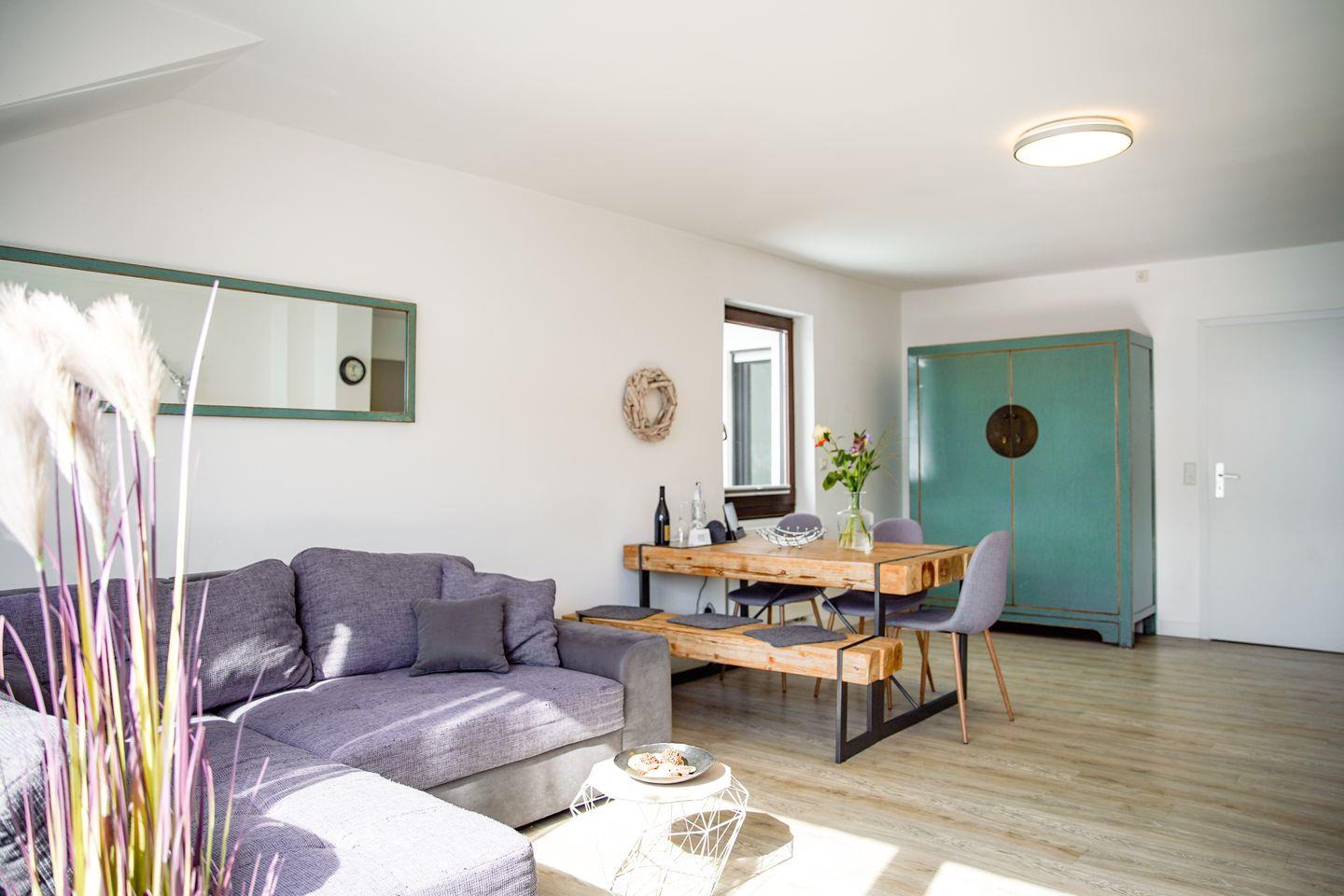 Das Apartment bietet Platz für bis zu 6 Personen, mit zwei Doppelbetten und 2 Schlafplätzen auf dem Schlafsofa. Bei Bedarf stellen wir Ihnen gerne ein zusätzliches Babybett und einen Hochstuhl zur Verfügung. Bitte sprechen Sie uns darauf an.