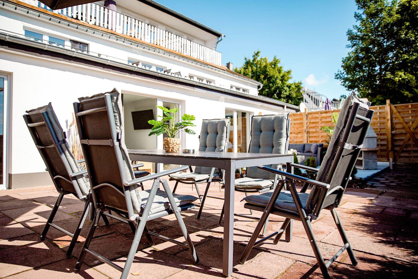 - Auf der Terrasse können Sie an schönen Sommerabenden verweilen und den Blick auf die Sauerländer Berge und die Bobbahn genießen.