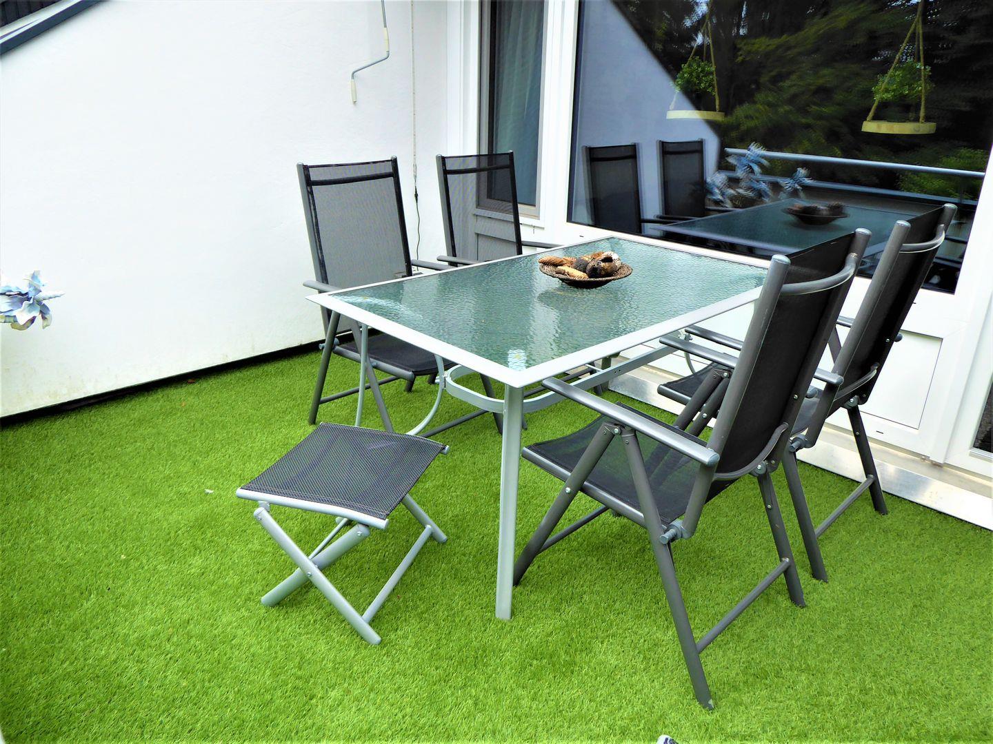 Eine Grundausstattung aus Kaffee, Tee, Milch und Zucker ist vorhanden. Eine schöne private Terrasse ist vorhanden und lädt zum Entspannen und Grillen mit der Familie oder Freunden ein.