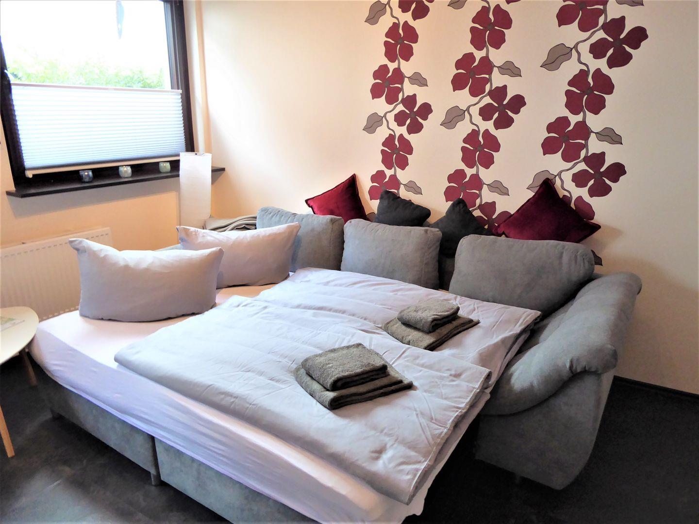 Der Wohnraum ist sehr gemütlich eingerichtet. Der offene Wohn Essbereich ist perfekt zum verweilen mit Freunden und Familie. Der Weg in die Stadt ist sehr kurz es liegt also an euch ob ihr Essen geht oder selber kocht.