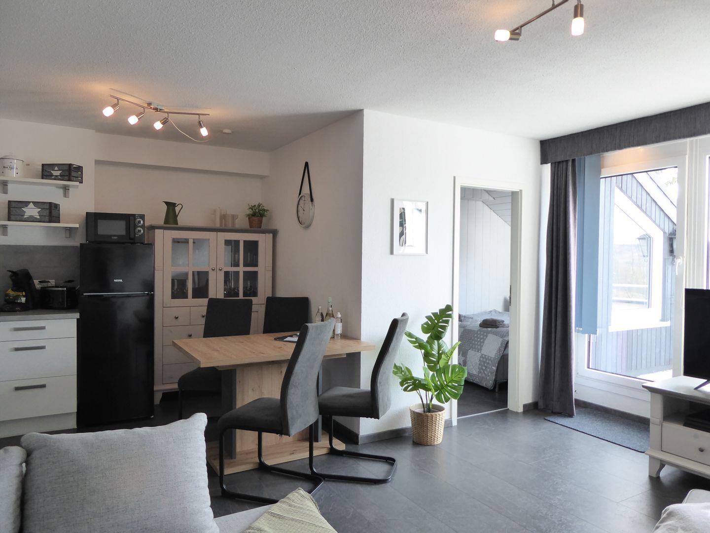 Die Wohnung ist sehr stylisch und gemütlich eingerichtet. Der offene Wohn /Essbereich ist perfekt zum verweilen mit der Familie oder Freunden. Die Küche ist mit allem wichtigen ausgestattet. Im ersten Schlafzimmer befindet sich ein Boxspringbett. Im hinteren Schlafzimmer befindet sich ein weiteres Doppelbett. Im Wohnzimmer ist eine bequeme Schlafcouch mit einem extra Topper.
