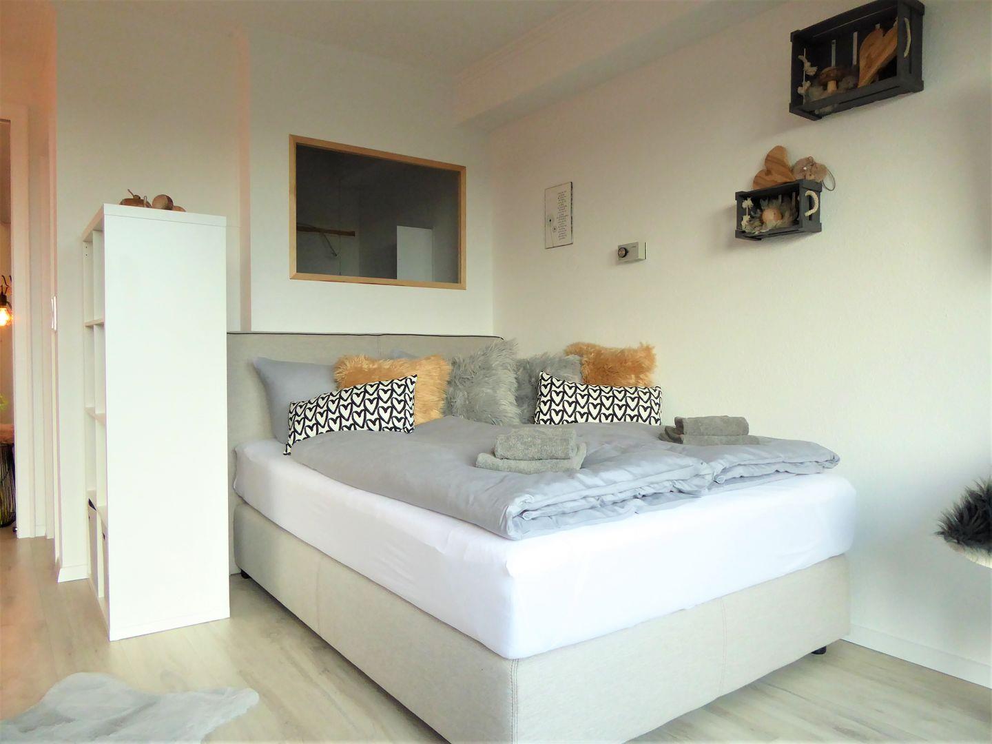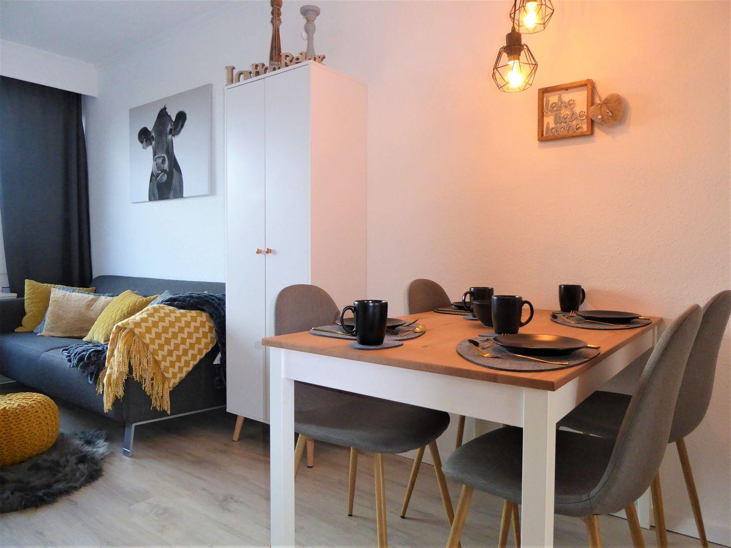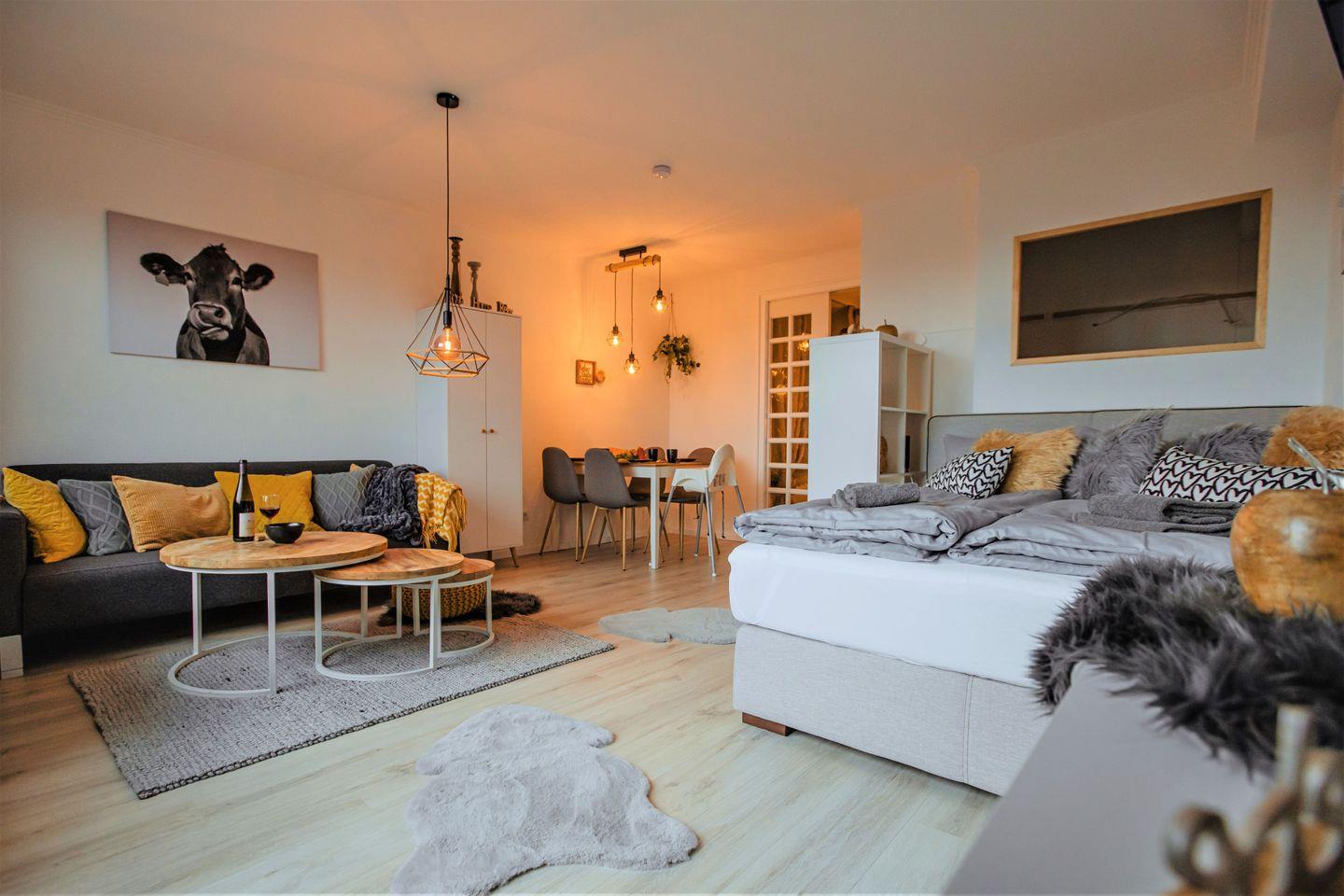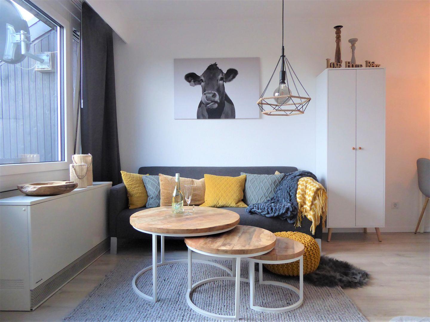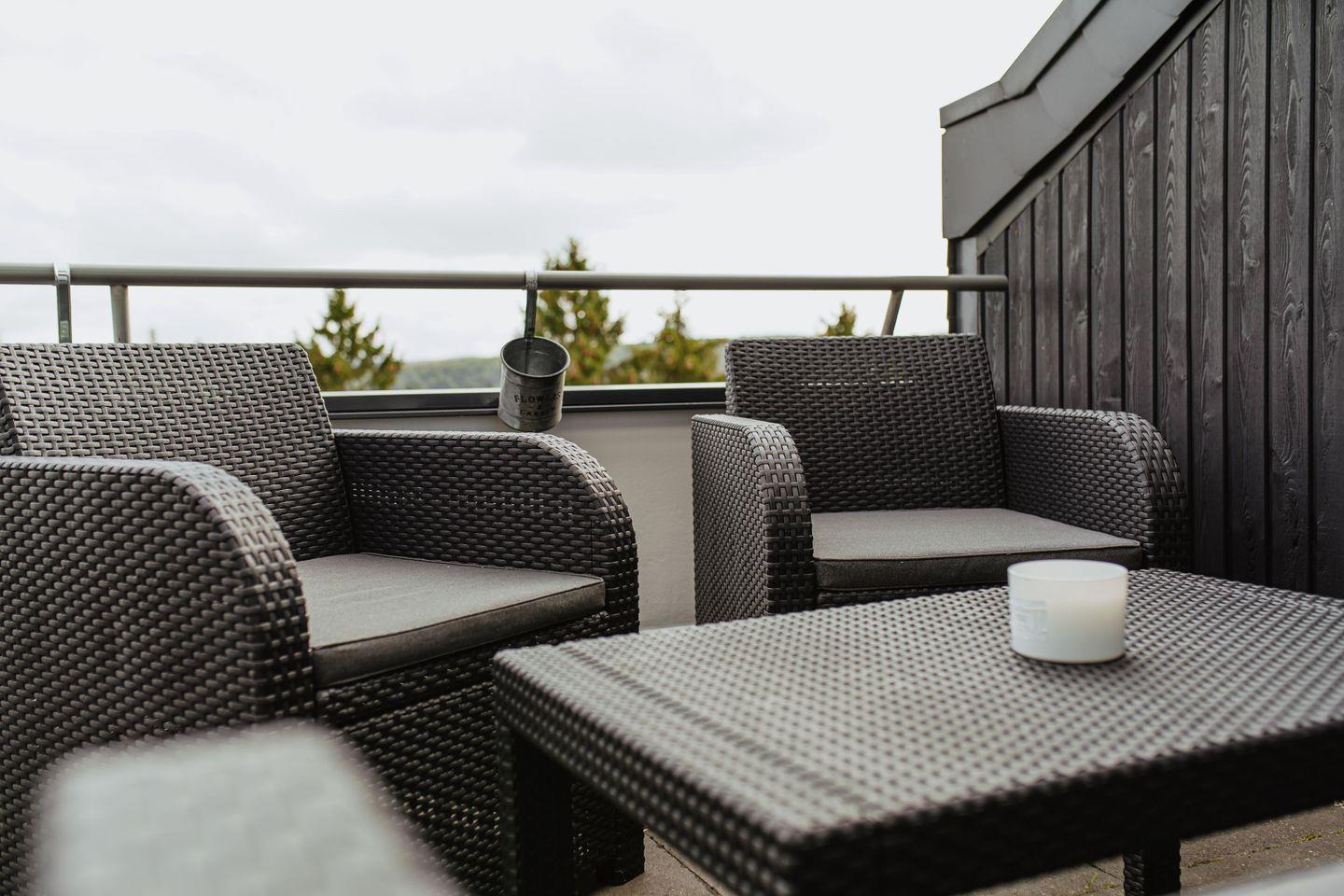 Auf 42qm erwartet Sie ein liebevoll eingerichteter Wohnbereich mit Panoramafenstern und direktem Zugang zum Balkon, der neben gemütlichen "chill out" Möbeln auch die Möglichkeit zum Barbecue bietet.