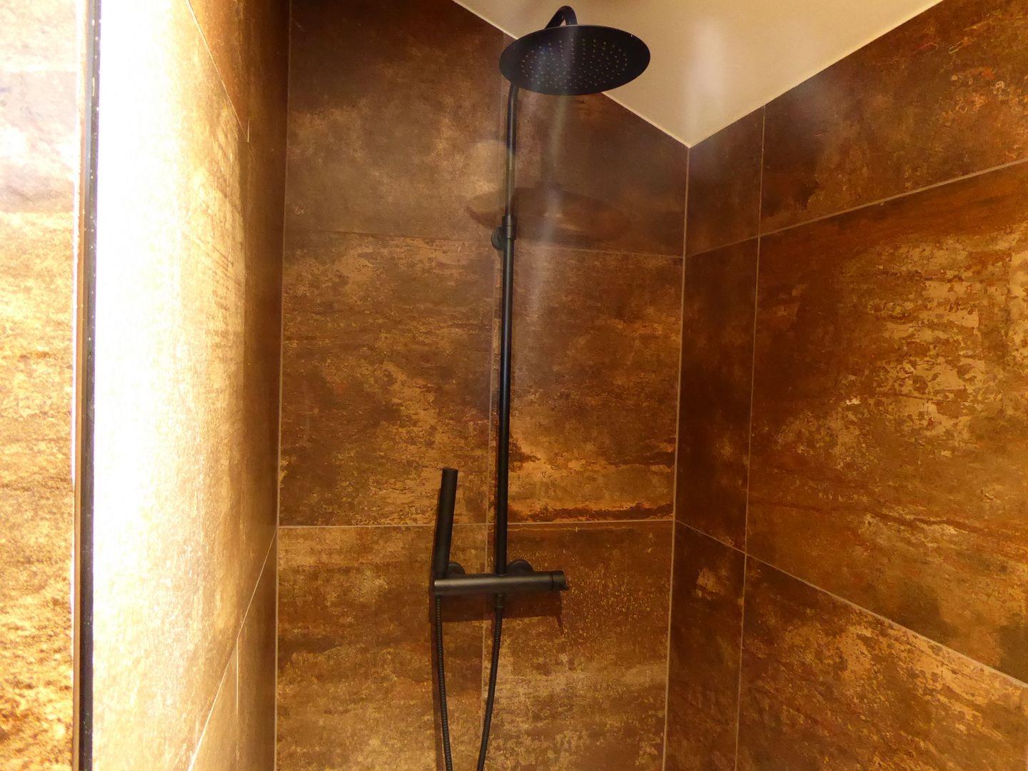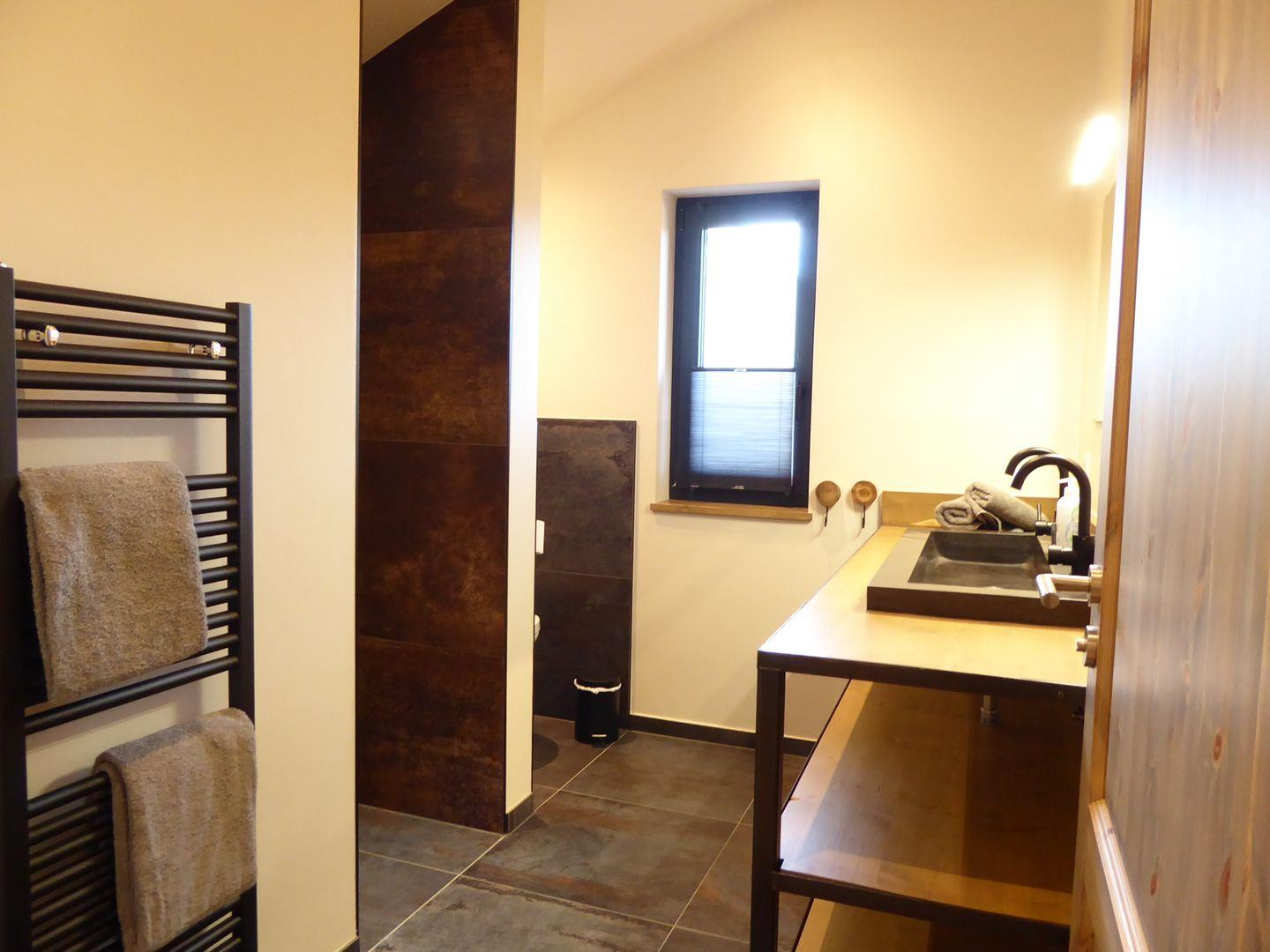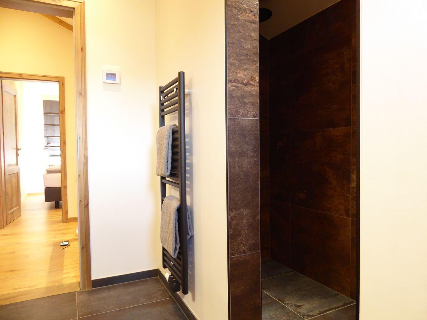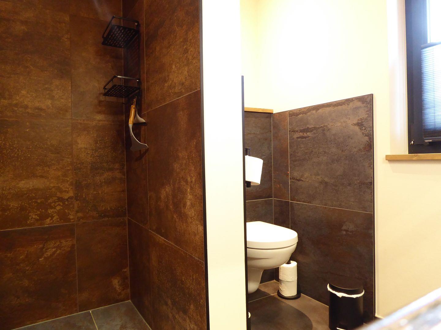 Das große Lichtdurchflutetes Badezimmer mit einer großen Dusche befindet sich auch auf dieser Etage.