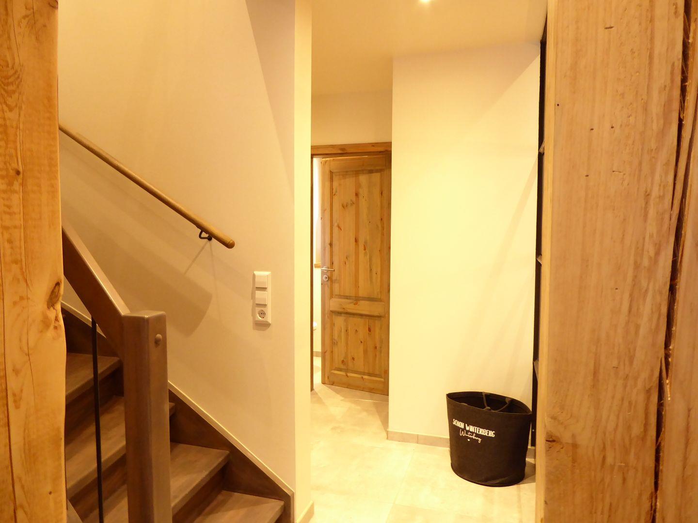 In der unteren Etage befinden sich ein großer Wohn Essbereich wo ihr nach Herzenslust kochen könnt. Die Küche ist neu und mit allem was ihr braucht ausgestattet. Der Wohnbereich läd ein für schöne Familien oder Weinabende mit Freunden ein. Ihr habt eine große Terrasse hinten. Im Untergeschoss befinden sich außerdem ein Gäste WC ein kleiner Abstellraum unter der Treppe und einen großen Abstellraum für Fahrräder Skier oder Schlitten.