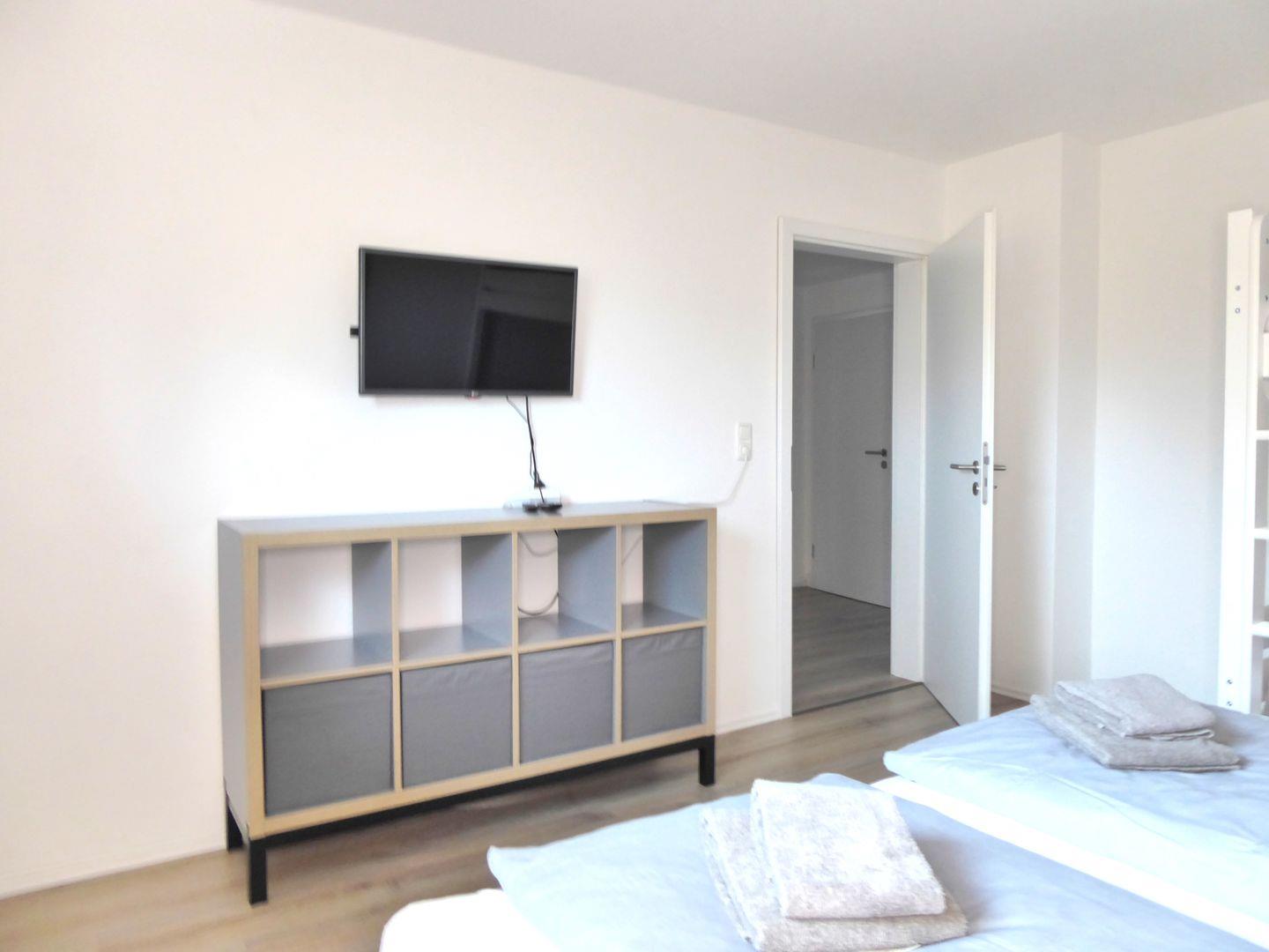 Im ersten Schlafzimmer befindet sich ein Doppelbett (180x200cm) sowie ein großer Kleiderschrank. Im zweiten Schlafzimmer befindet sich ein Doppelbett (180x200cm) sowie ein Etagenbett für Erwachsene.