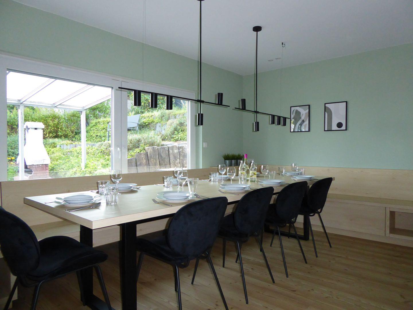 Dieses schöne Ferienhaus direkt in der Natur wurde frisch renoviert und neu eingerichtet. Hier kann die ganze Familie entspannen und sich wohlfühlen. Der große Wohn Essbereich lädt zu lustigen Spieleabenden ein. Ihr könnt auch einfach nurem knistern im Kamin lauschen.