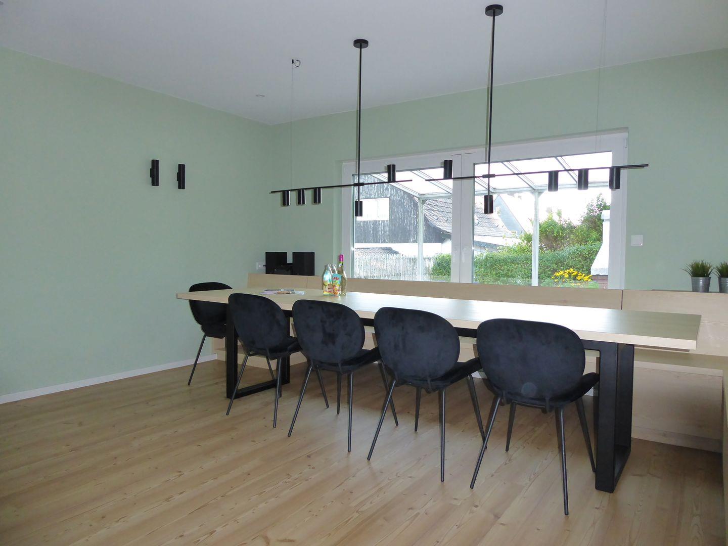 Das Ferienhaus verfügt über einen großen lichtdurchfluteten Eingangsbereich. Die Küche ist mit allem wichtigen ausgestattet. Ein großzügiger Wohn Essbereich lädt zum verweilen mit der ganzen Familie ein. Hier kann auch der Kamin mit genutzt werden. Das Gäste WC verfügt über eine Waschmaschine und einen Trockner. Im oberen Bereich befinden sich 4 große Schlafzimmer. In 2 der Schlafzimmer befindet sich eine Schlafcouch. Alle Schlafzimmer verfügen über einen Smart TV. In dieser Etage sind 2 Badezimmer. Eines der Badezimmer verfügt über eine Badewanne mit Duschglas und das andere Badezimmer verfügt über eine Dusche. Alle Betten sind bei Anreise mit frischer Bettwäsche bezogen. Badetücher und Handtücher liegen selbstverständlich auch bereit. Hier heisst es ankommen und entspannen!