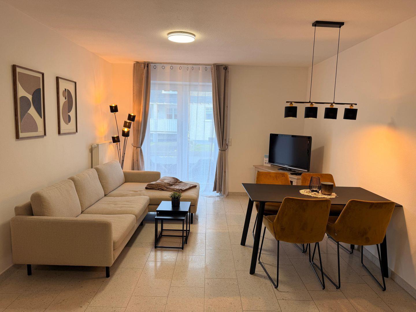 Das Wohnzimmer lädt mit einer komfortablen Sofaecke und zwei Fernsehern zum Entspannen ein. Für wohlige Wärme sorgen sowohl eine Zentral- als auch eine Fußbodenheizung. Die offene Küche ist umfassend ausgestattet und lässt keine Wünsche offen: Ein Cerankochfeld, Backofen, Geschirrspülmaschine, Mikrowelle, Kühlschrank mit Gefrierfach, Dolce-Gusto-Espressomaschine, Kaffeemaschine, Wasserkocher, Toaster sowie reichlich Geschirr und Kochutensilien stehen bereit. Der Essbereich ist zentral platziert und bietet Platz für alle Gäste. Waschmaschine, Staubsauger und weitere praktische Ausstattungsmerkmale wie ein Haartrockner und ein Spiegel sind vorhanden. Die Unterkunft ist als Nichtraucherwohnung ausgewiesen.