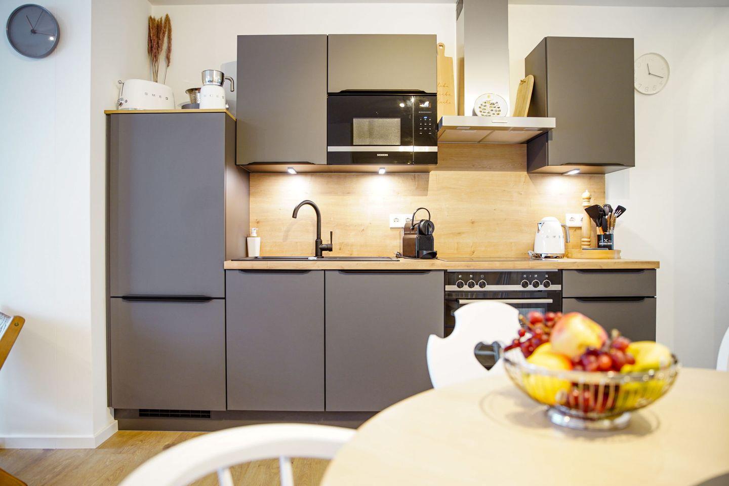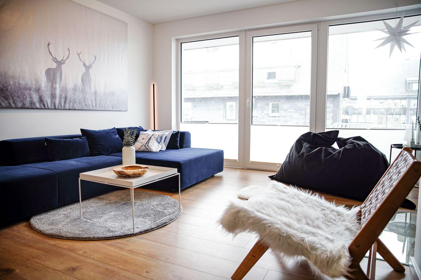 Die 75 m² große, 2023 fertiggestellte Wohnung bietet Platz für bis zu 5 Personen: 2 Schlafzimmer (1 Doppelbett mit TV, 1 Etagenbett für 3 Personen), Wohnzimmer mit Dekokamin und Markenmöbeln, Essbereich, möblierter Balkon. Ausstattung: Bad mit ebenerdiger Dusche, Waschmaschine, Infrarotkabine, WLAN, PKW-Stellplatz, abschließbares Kellerabteil mit E-Bike-Lademöglichkeit. Wohnung in der 2. Etage, erreichbar per Aufzug. Babybett und Hochstuhl auf Anfrage.